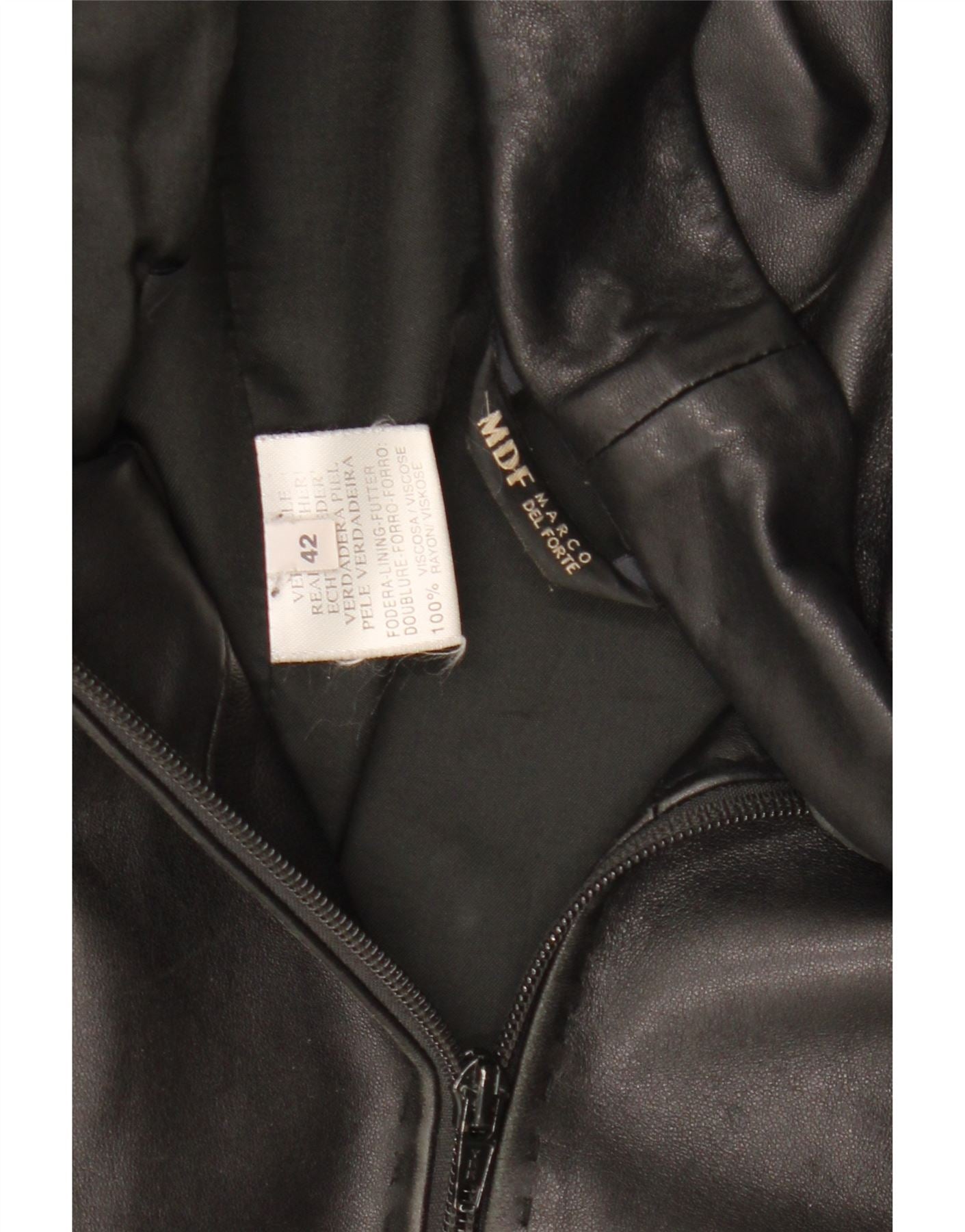 MARCO DEL FORTE Jachetă de piele pentru femei IT 42 Medium Black Leather