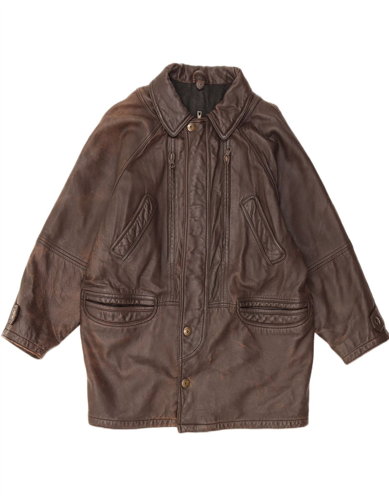 Palton din piele pentru bărbați MARCOS IT 50 din piele maro mare