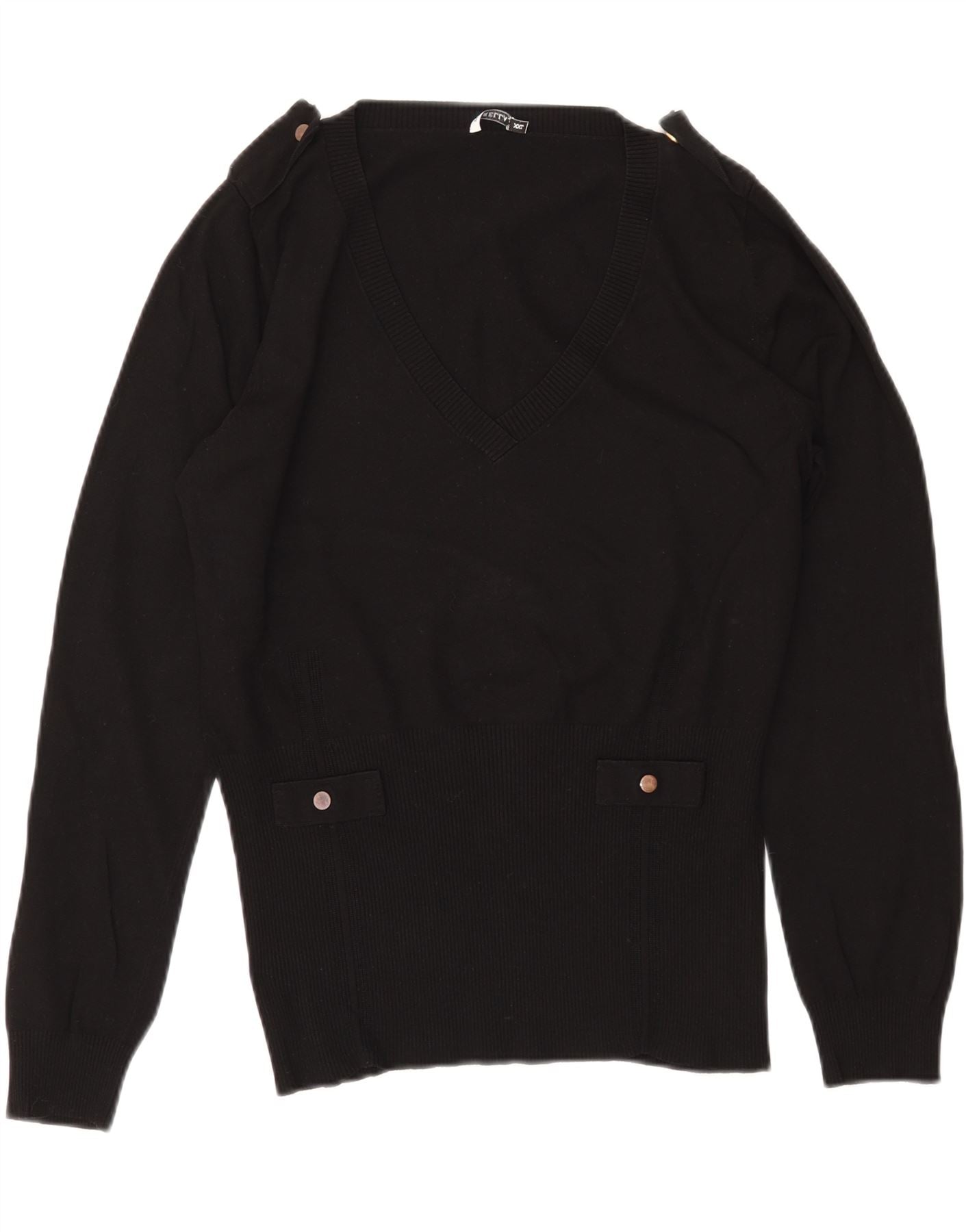 MARELLA Pulover militar cu decolteu în V pentru femei UK 20 2XL Viscoză neagră