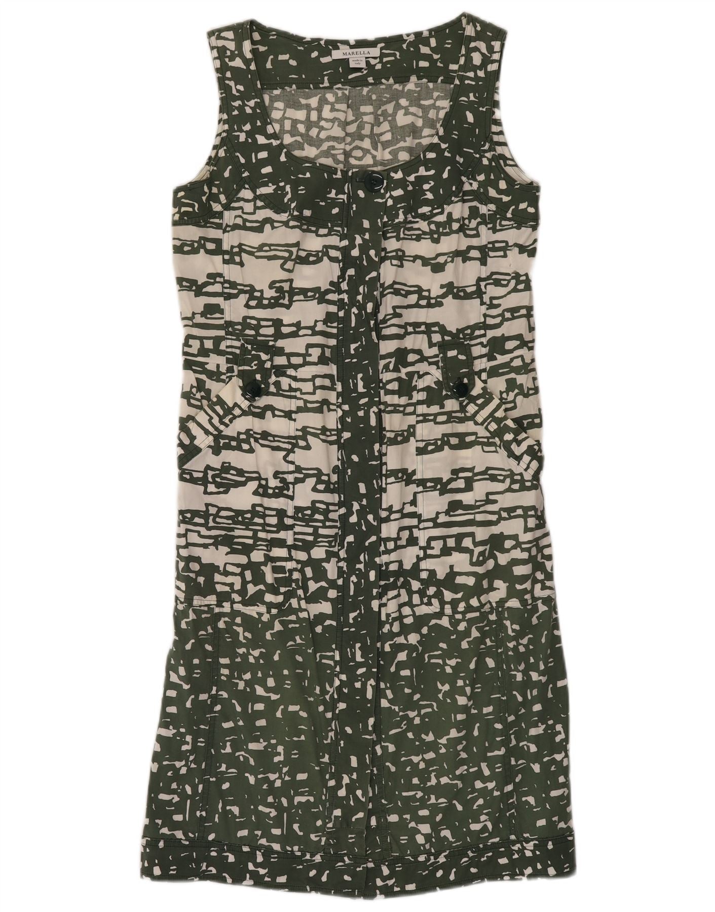 MARELLA Rochie cămașă fără mâneci pentru femei UK 12 Medium Green Geometric