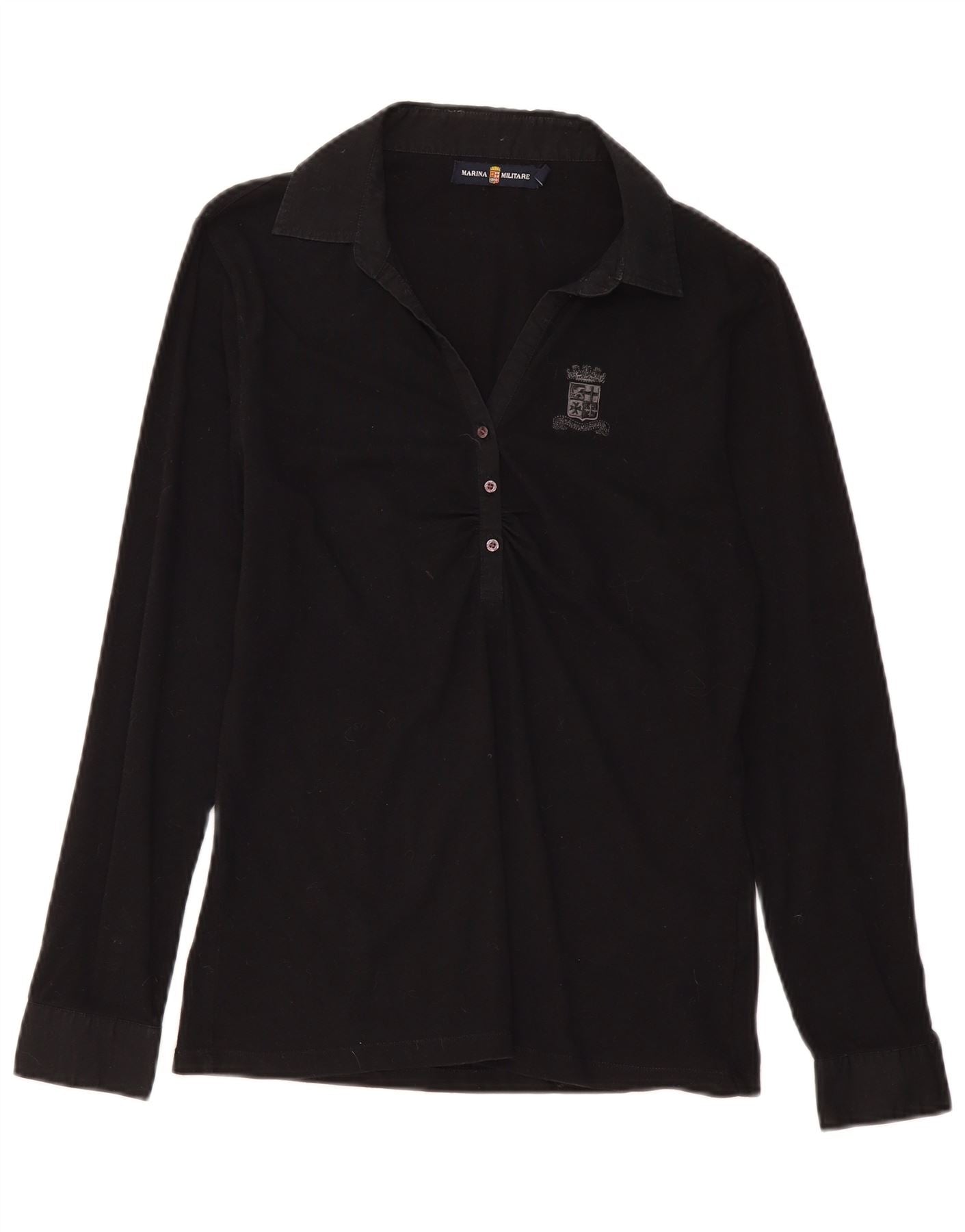 MARINA MILITARE Tricou polo cu mânecă lungă pentru femei UK 18 XL bumbac negru