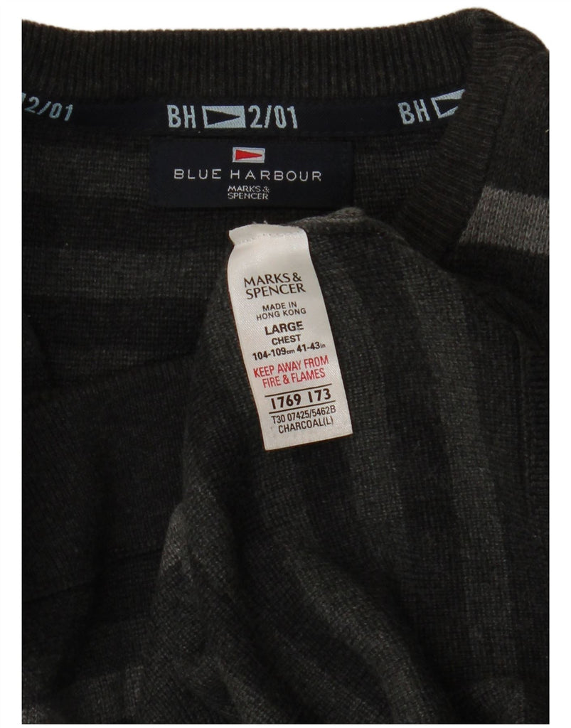 MARKS & SPENCER Mens Blue Harbour Crew Neck Jumper Sweater Large Grey
