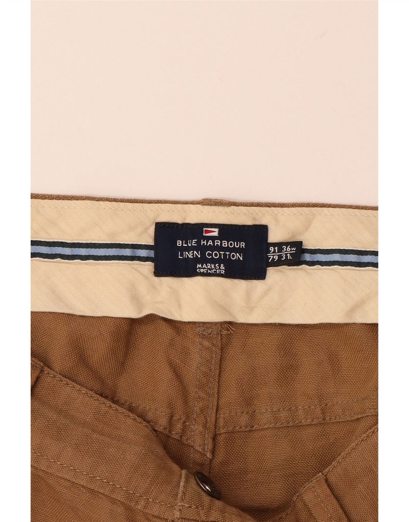 MARKS & SPENCER Mens Blue Harbour Straight Casual Trousers W36 L31 Brown