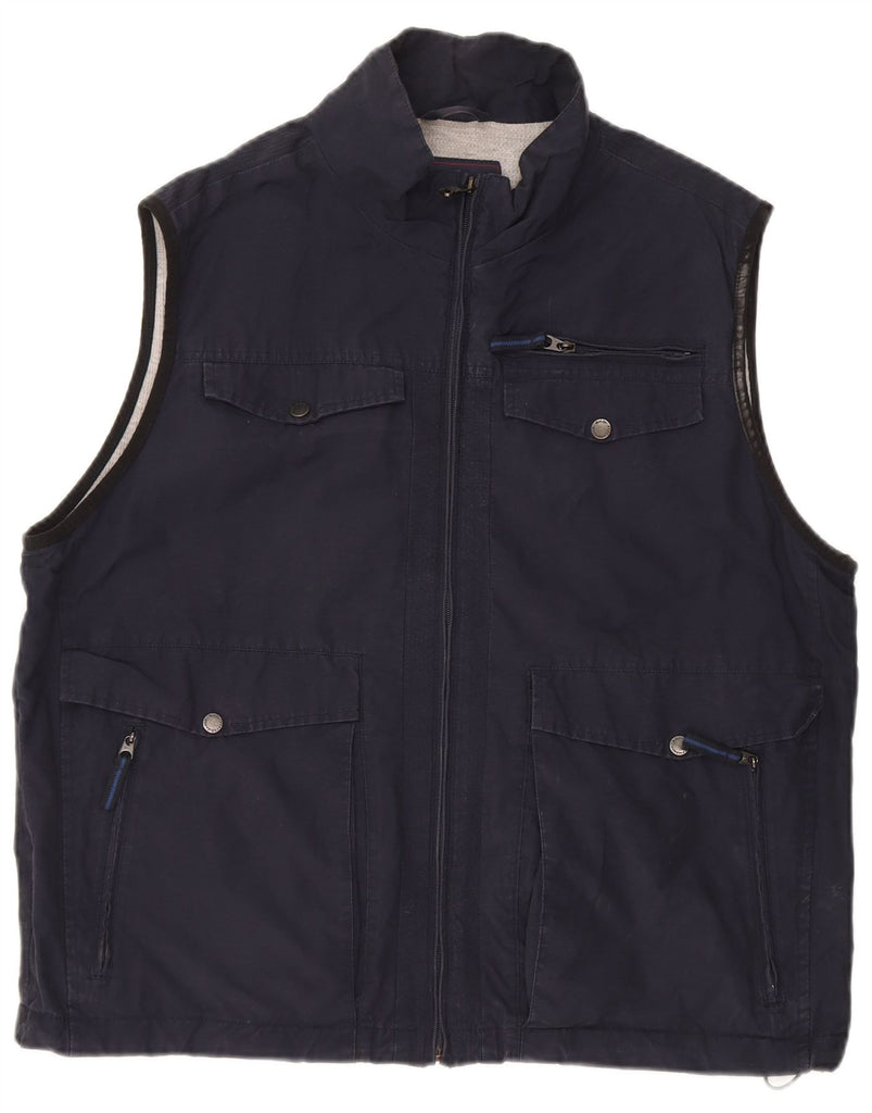 MARKS & SPENCER Mens Blue Harbour Utility Gilet UK 42 XL Navy Blue Cotton