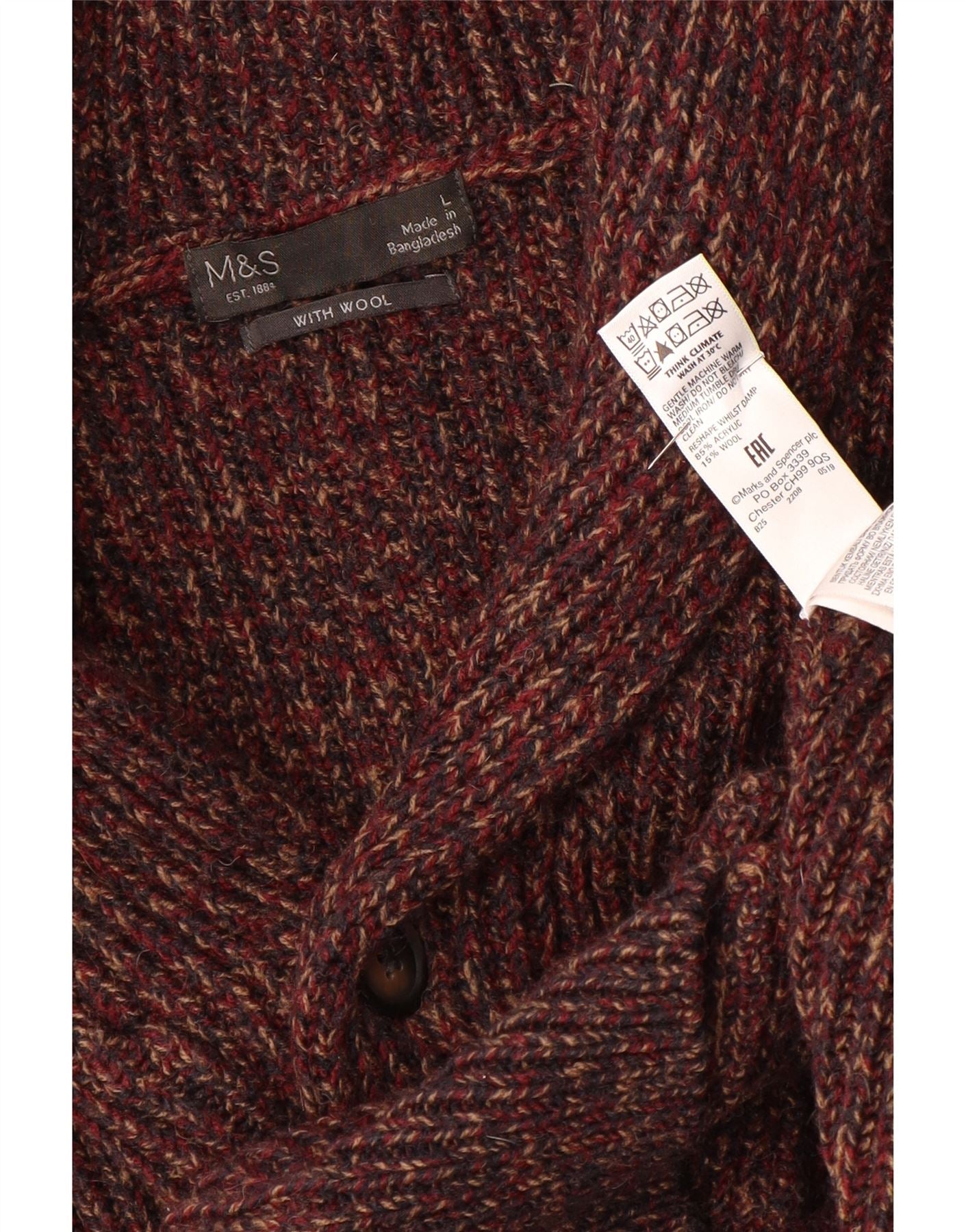 MARKS & SPENCER Pulover cardigan pentru bărbați, mare, burgundă, cu pete acrilice
