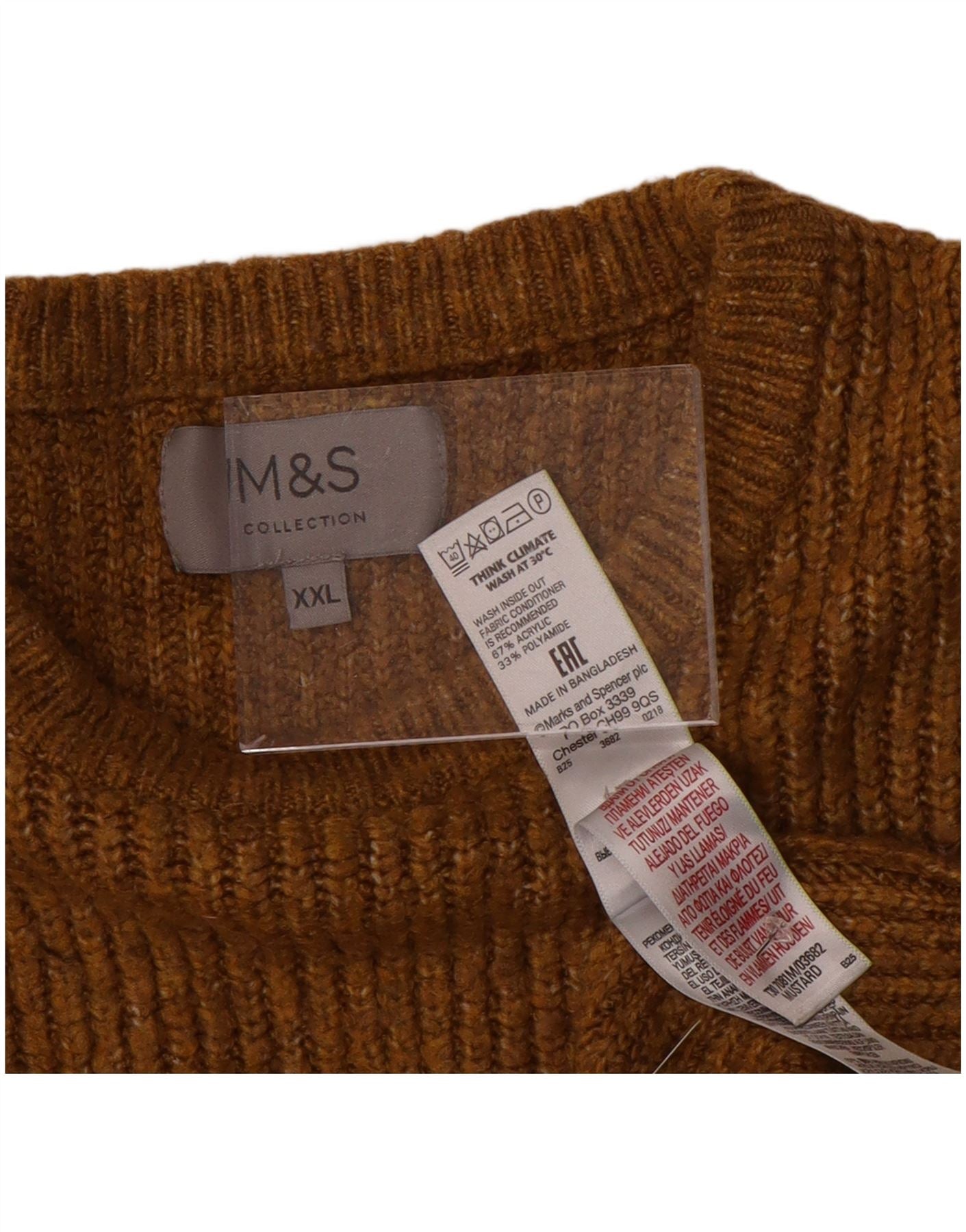 MARKS & SPENCER Pulover pentru bărbați cu decolteu rotund 2XL maro acrilic