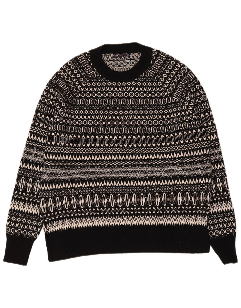 MARKS & SPENCER Pulover pentru bărbați cu decolteu rotund, mediu negru, Fair Isle