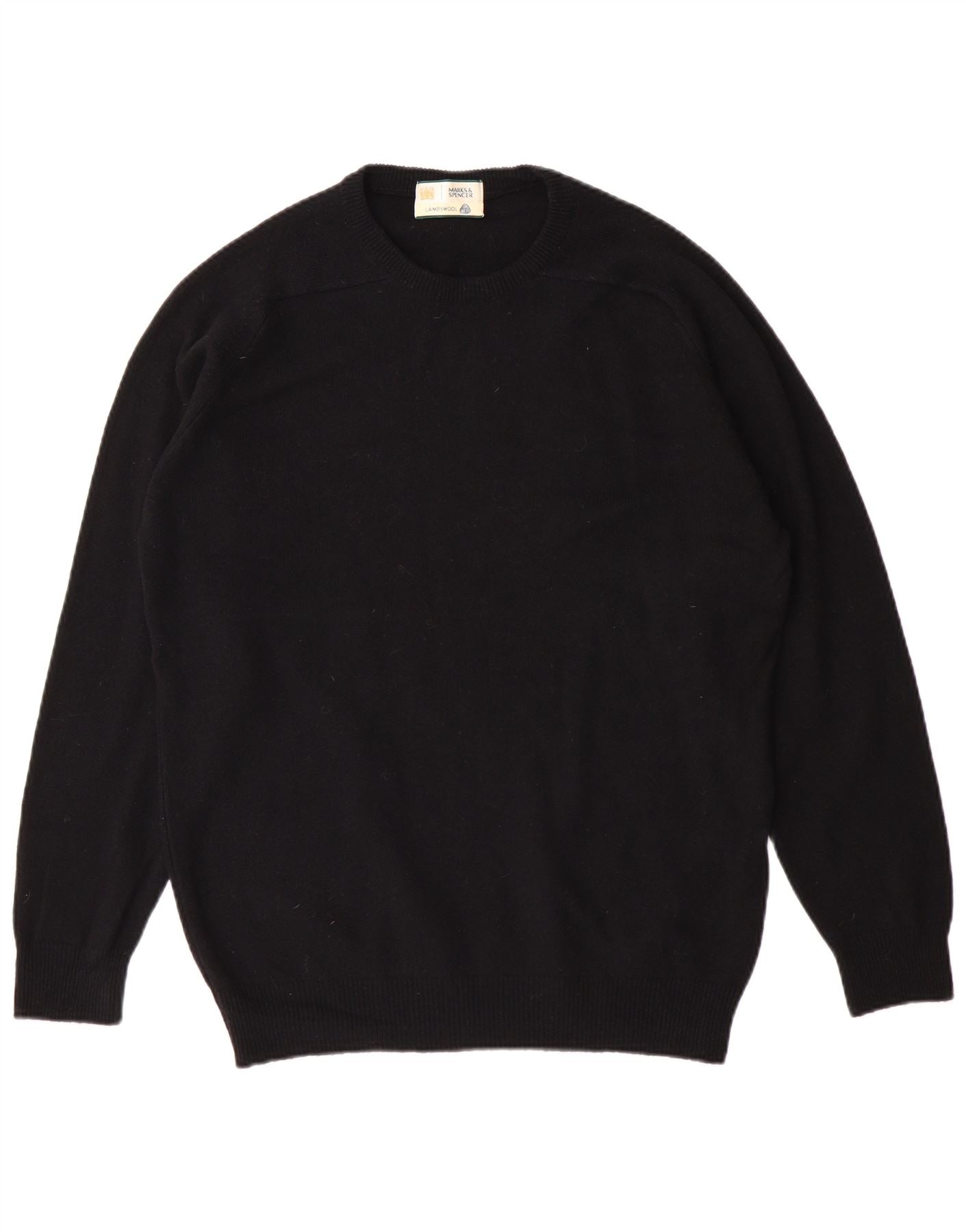 Pulover pentru bărbați Marks & Spencer, cu gât roșu, din lână de miel neagră mică