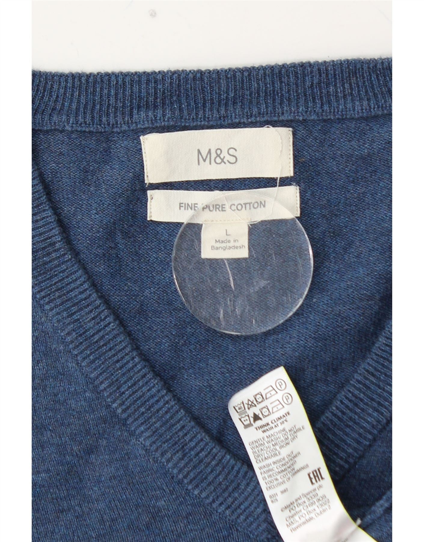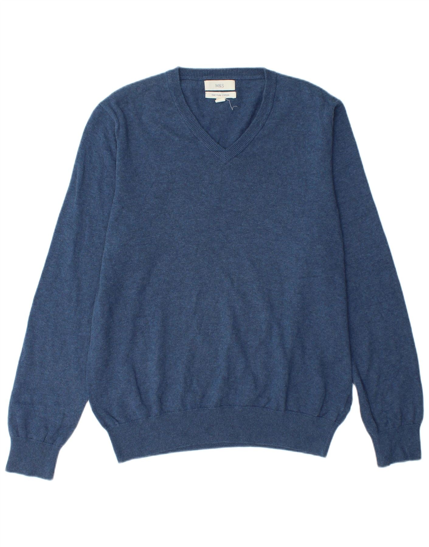 MARKS & SPENCER Pulover cu decolteu în V pentru bărbați din bumbac albastru mare