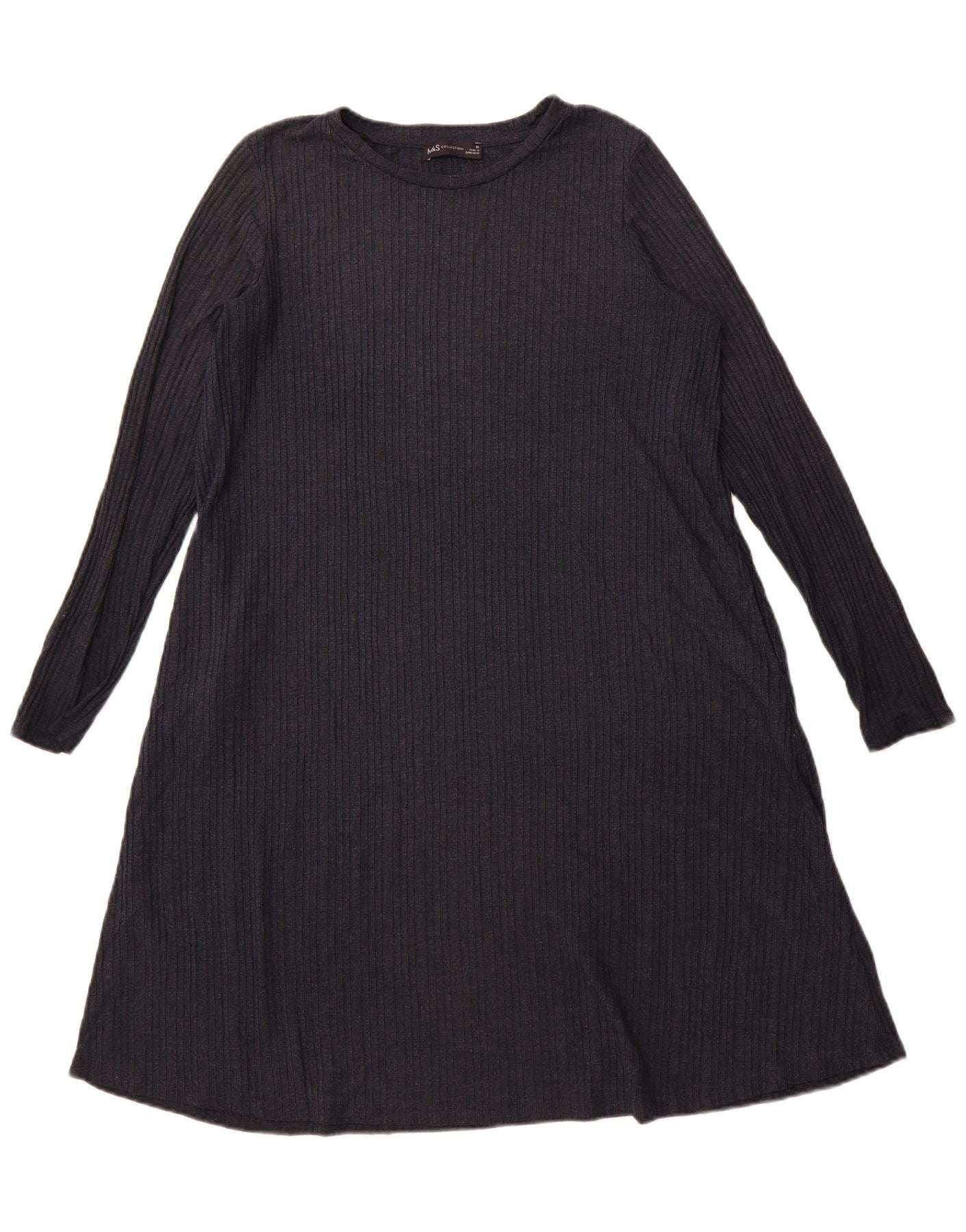 - Descriere AI: Această rochie în formă de A pentru femei Marks & Spencer este confecționată dintr-o țesătură confortabilă din tricot gri cu nervuri. Amestecul de poliester și viscoză oferă o senzație moale cu elasticitate pentru ușurință. Are un decolteu rotund clasic și mâneci lungi. Potrivirea relaxată se înfășoară ușor într-o siluetă în formă de A, asigurând confort și un drapaj măgulitor. Acest stil de pulover este simplu, dar elegant.
