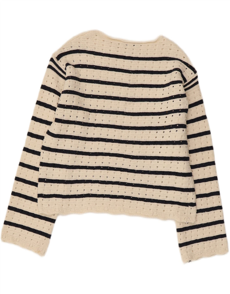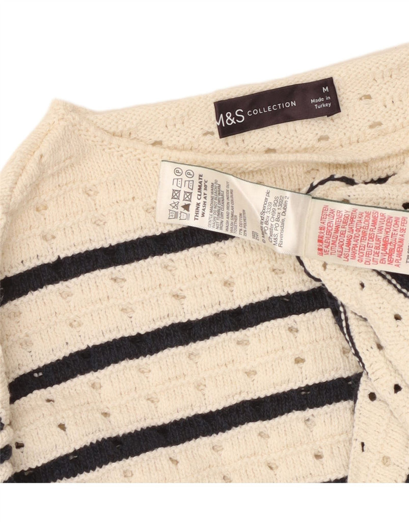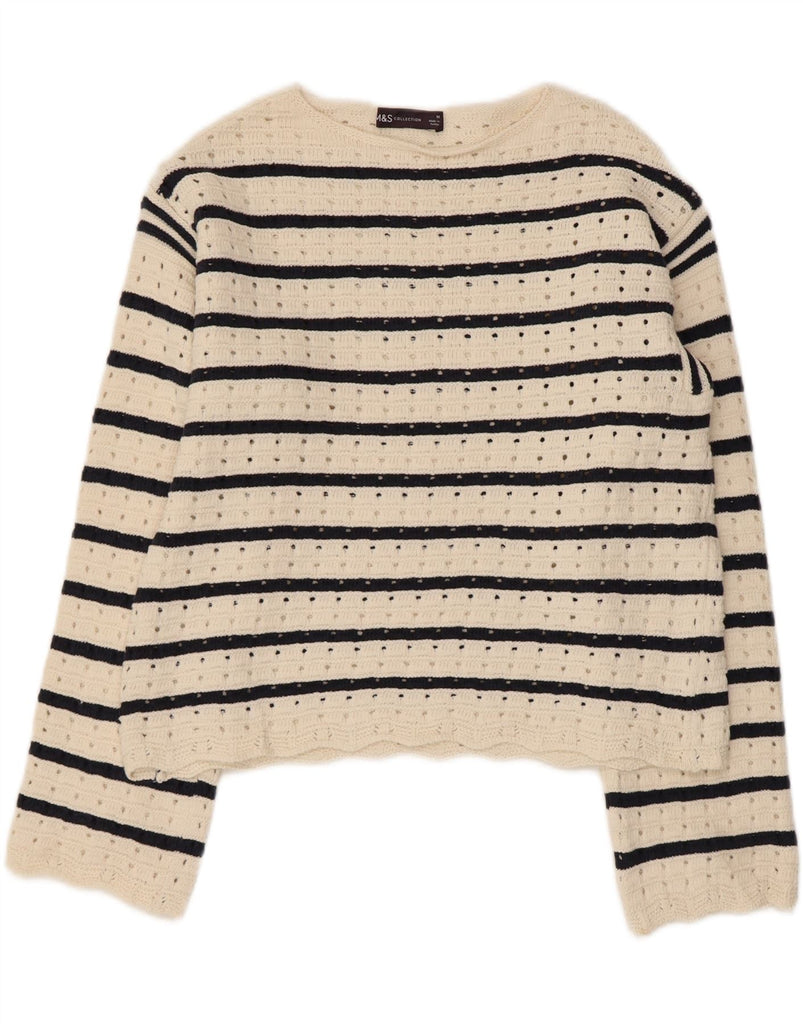 MARKS & SPENCER Womens Boat Neck Jumper Sweater UK 14 Medium White Striped
