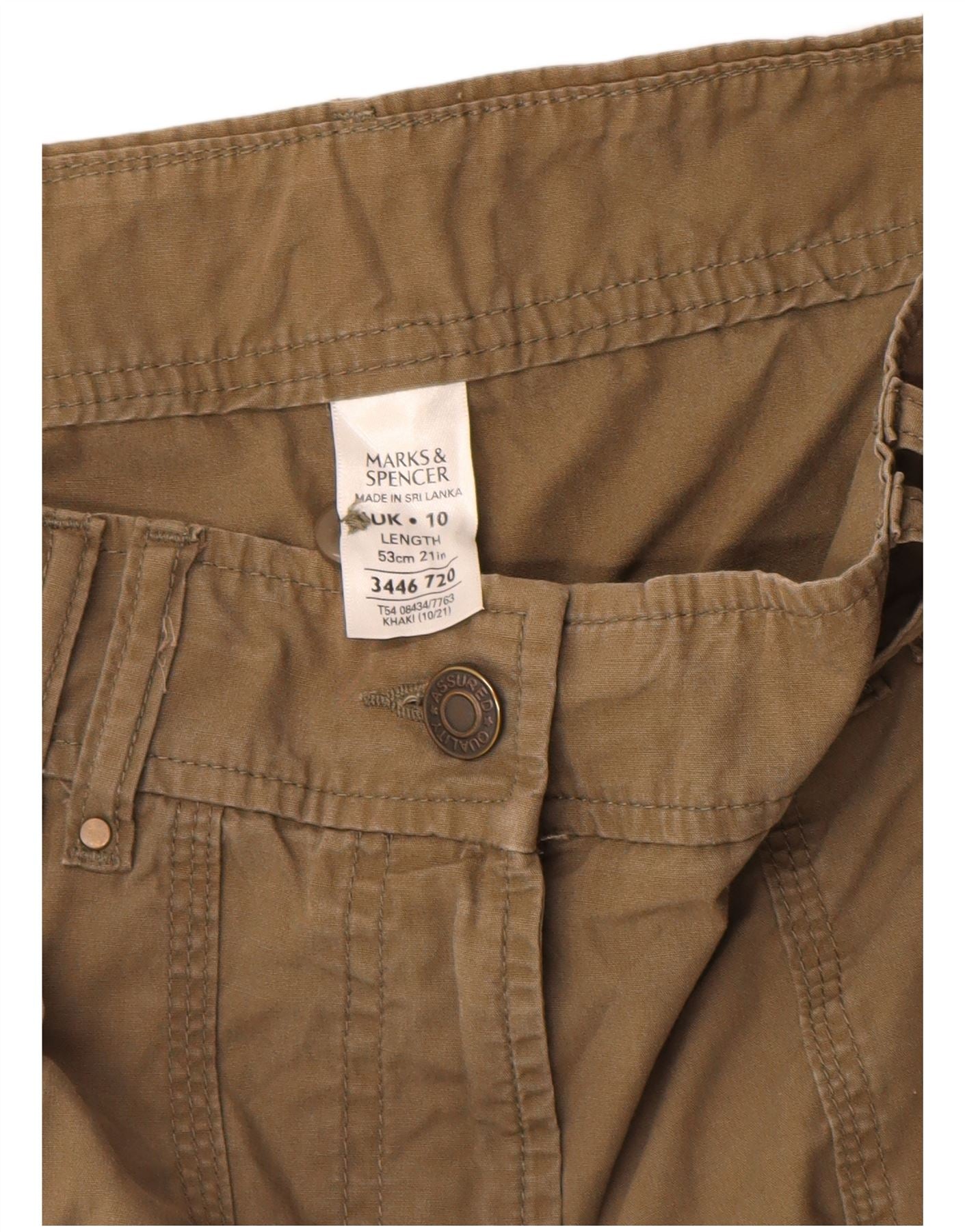 - Descriere AI: Această fustă cargo pentru femei Marks & Spencer este confecționată dintr-o țesătură durabilă kaki. Are o potrivire obișnuită și o siluetă dreaptă. Închiderea cu nasturi și buclele pentru curea definesc talia. Mai multe buzunare utilitare cu accente de nasturi împodobesc partea frontală și laterală, sporind stilul său militar. Cusăturile tonale adaugă detalii subtile. Aceasta fusta practica ofera atat confort, cat si o estetica clasica utilitara pentru purtarea de zi cu zi.