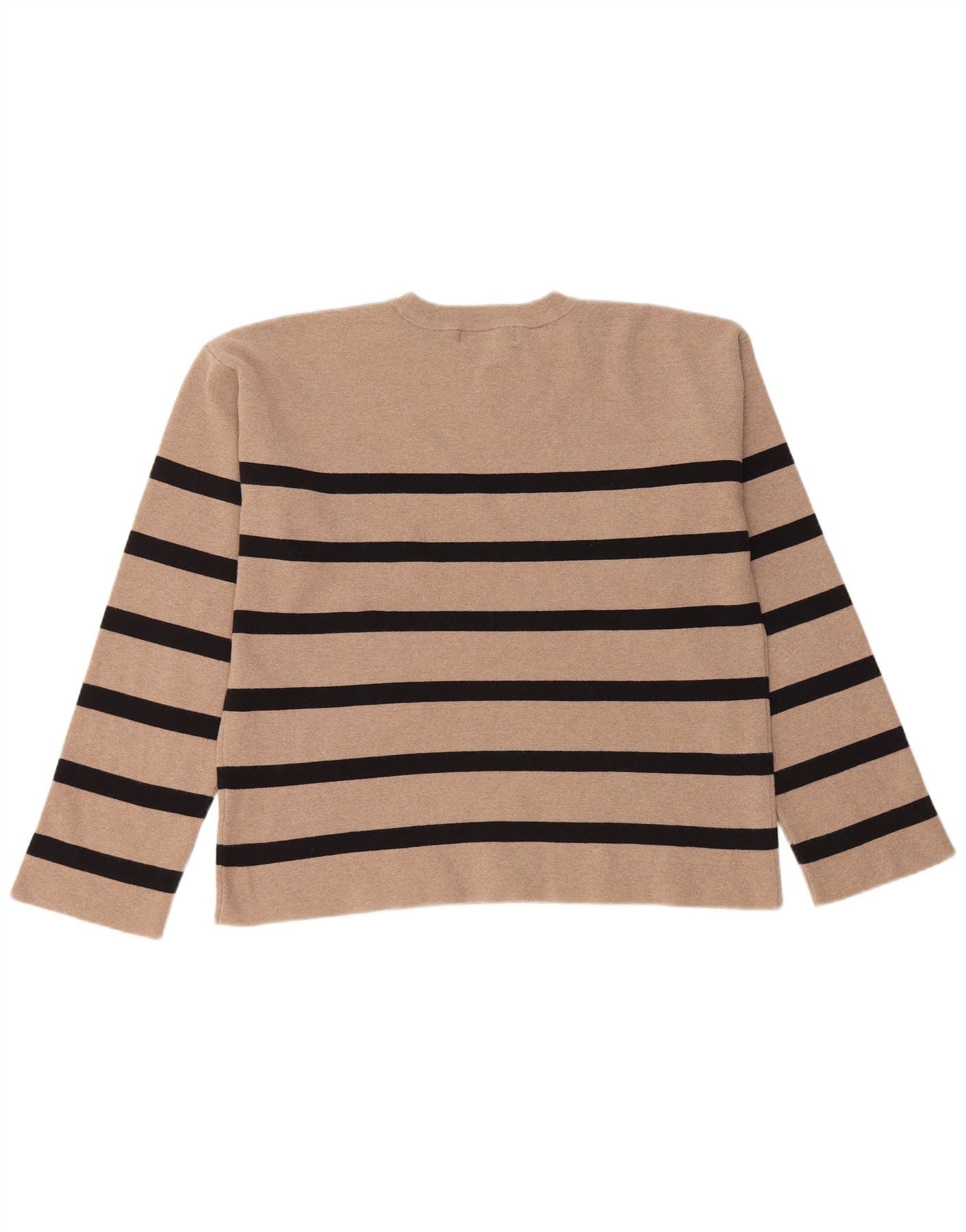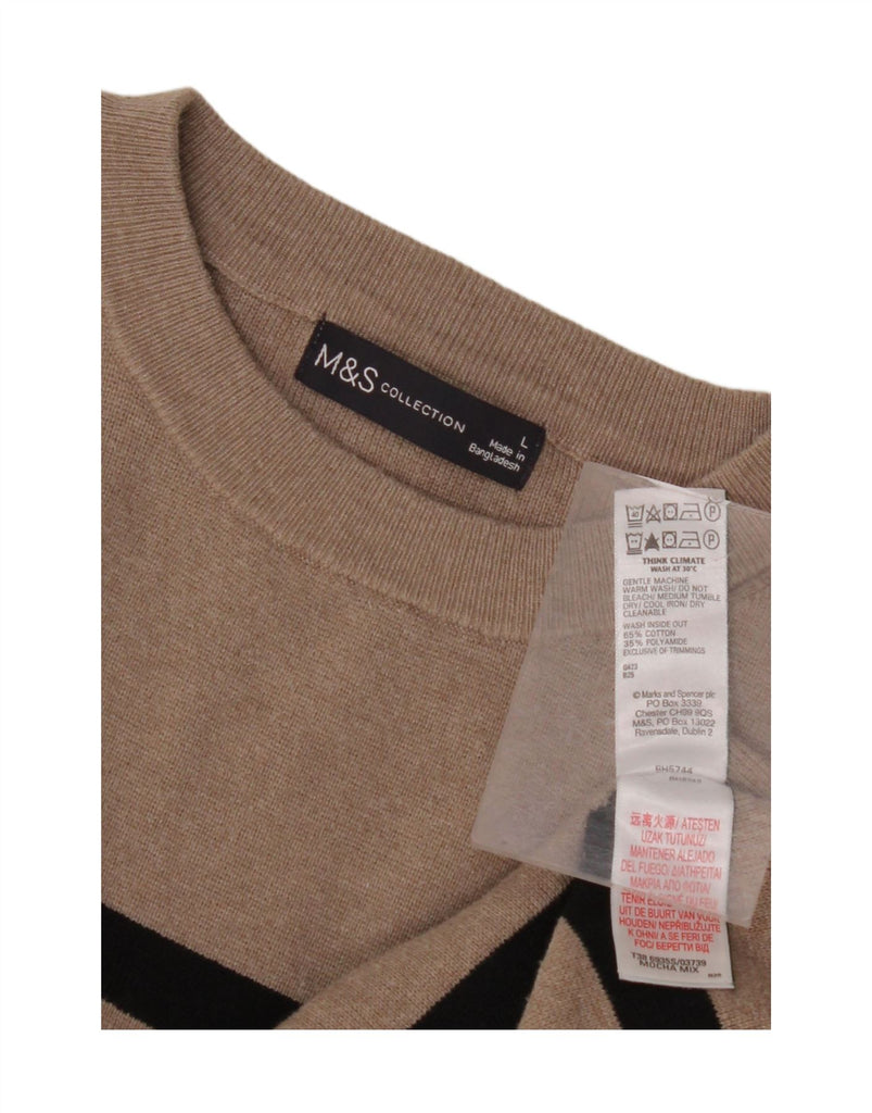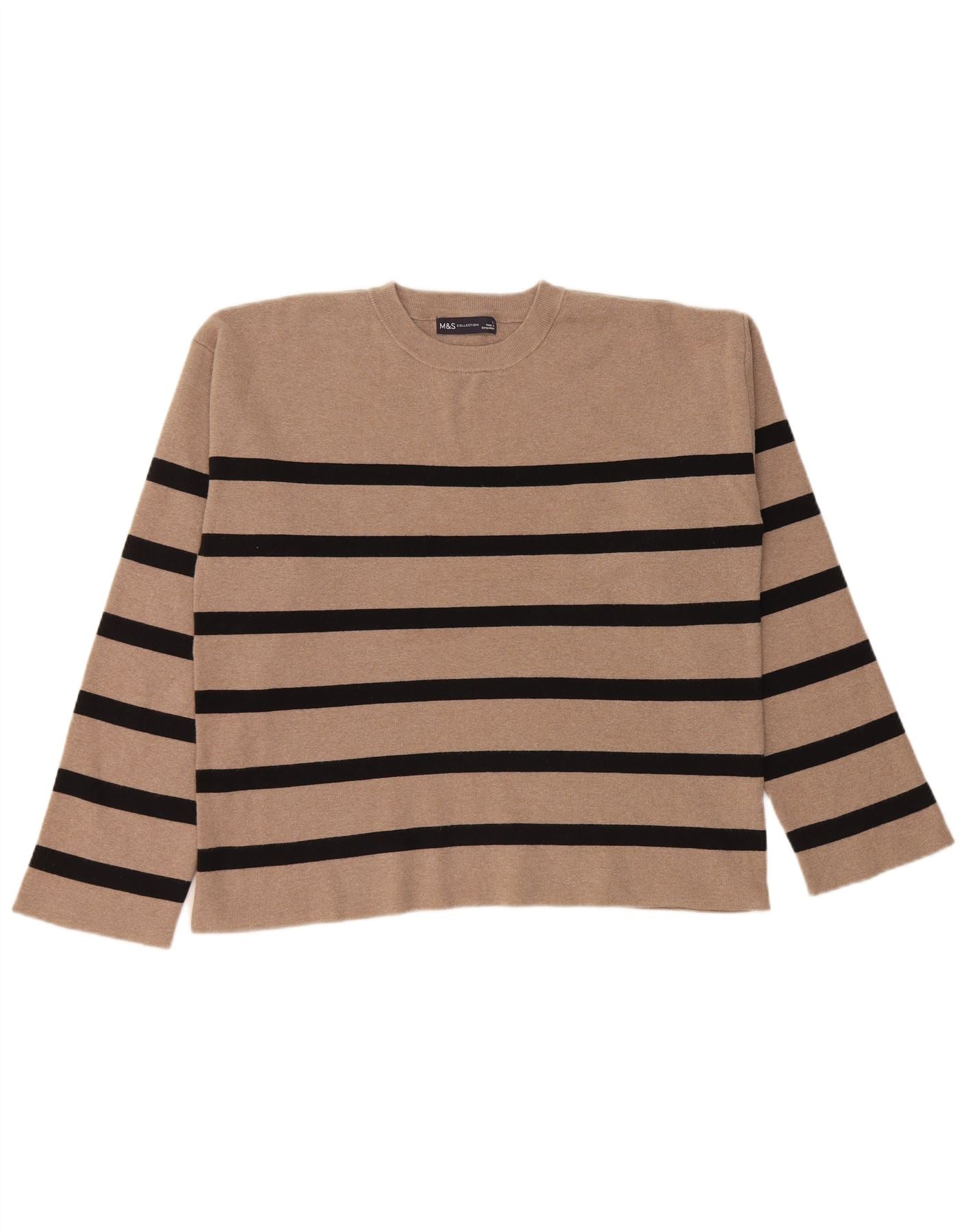 MARKS & SPENCER Pulover pentru femei cu decolteu rotund UK 16, mare, bej, cu dungi