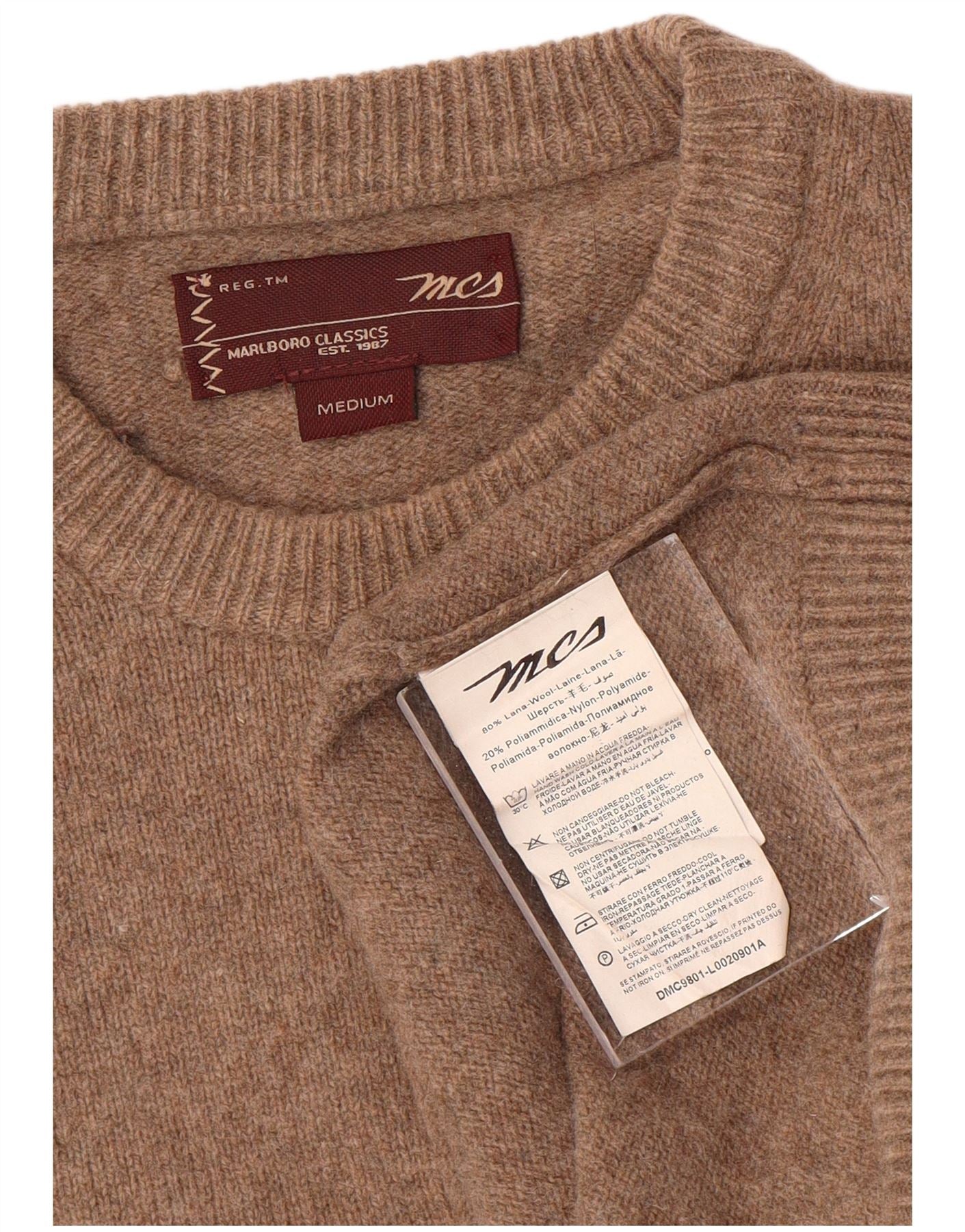 MARLBORO CLASSICS Pulover pentru bărbați cu gât crew din lână maro mediu