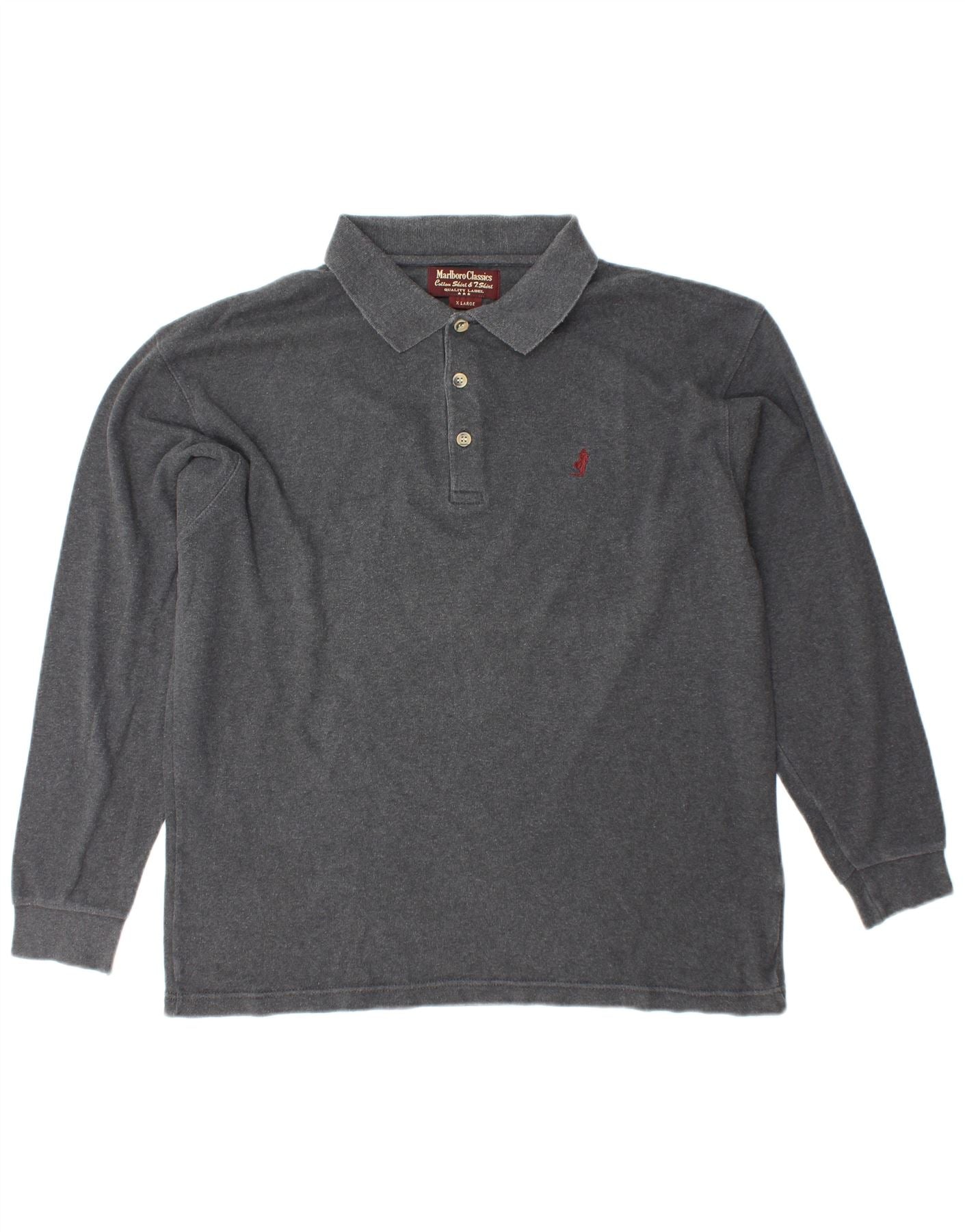 MARLBORO CLASSICS Mens Long Sleeve Polo Shirt XL Grey Cotton