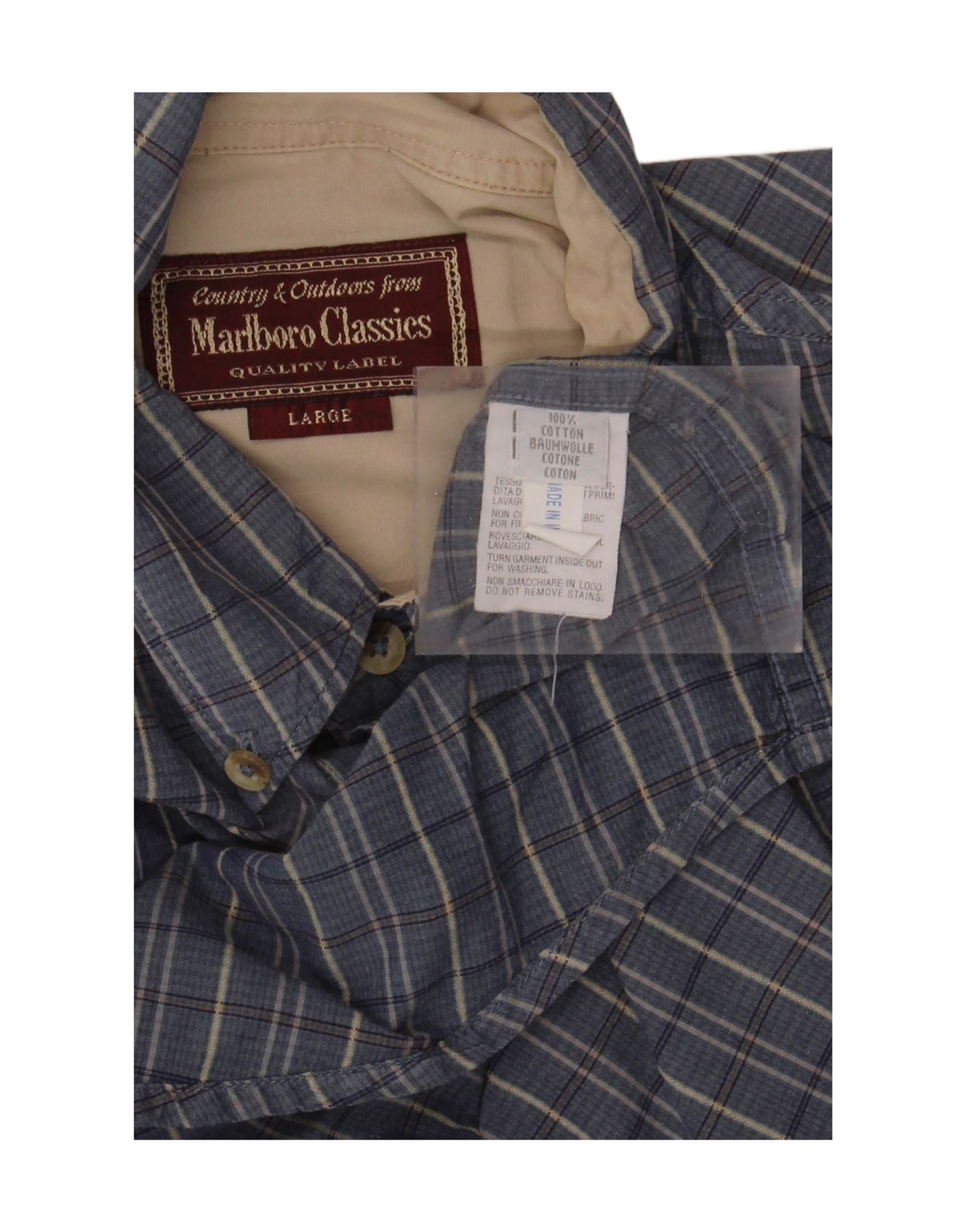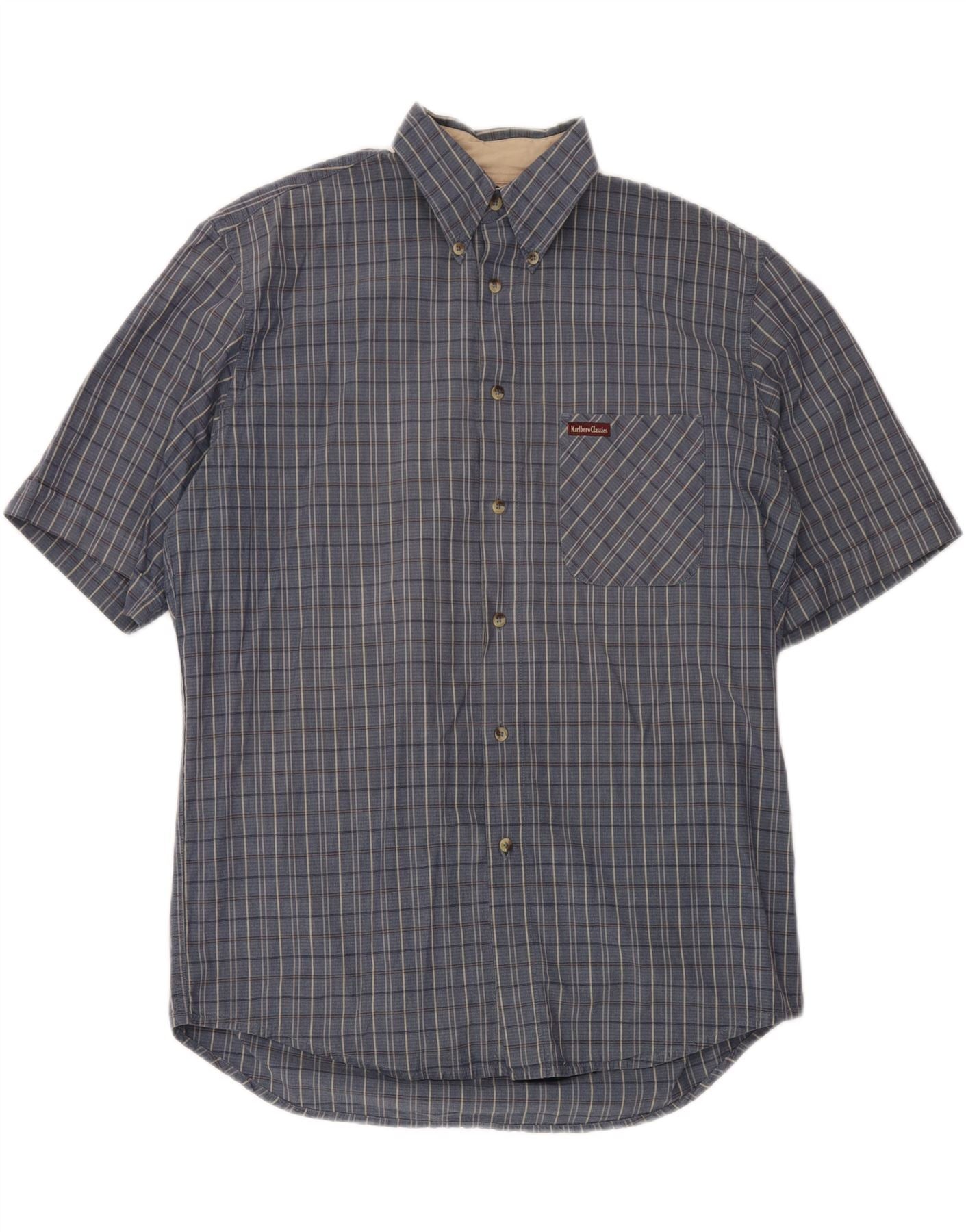MARLBORO CLASSICS Cămașă cu mânecă scurtă pentru bărbați, bumbac cu carouri albastre mari