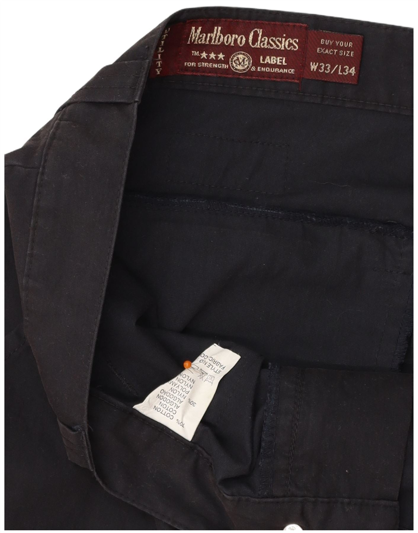 MARLBORO CLASSICS Mens Straight Cargo Trousers W33 L29 Black Cotton