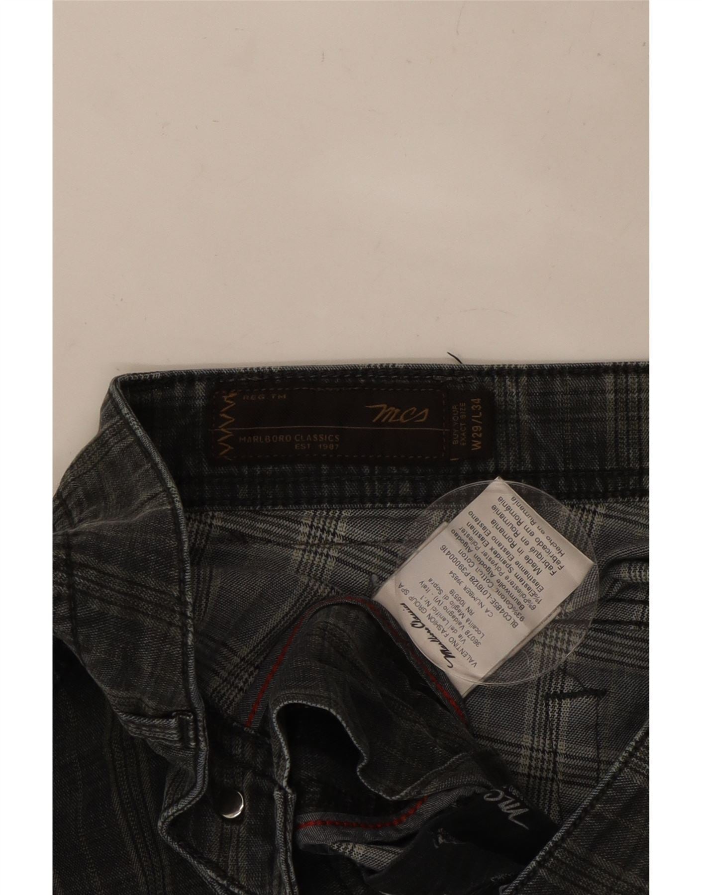 MARLBORO CLASSICS Pantaloni casual drepti pentru bărbați W29 L29, bumbac negru cu carouri
