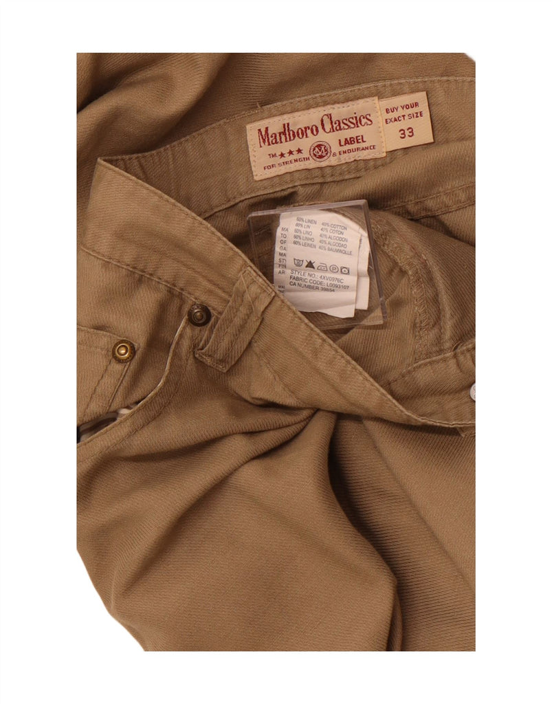 MARLBORO CLASSICS Mens Straight Casual Trousers W33 L30 Beige Linen