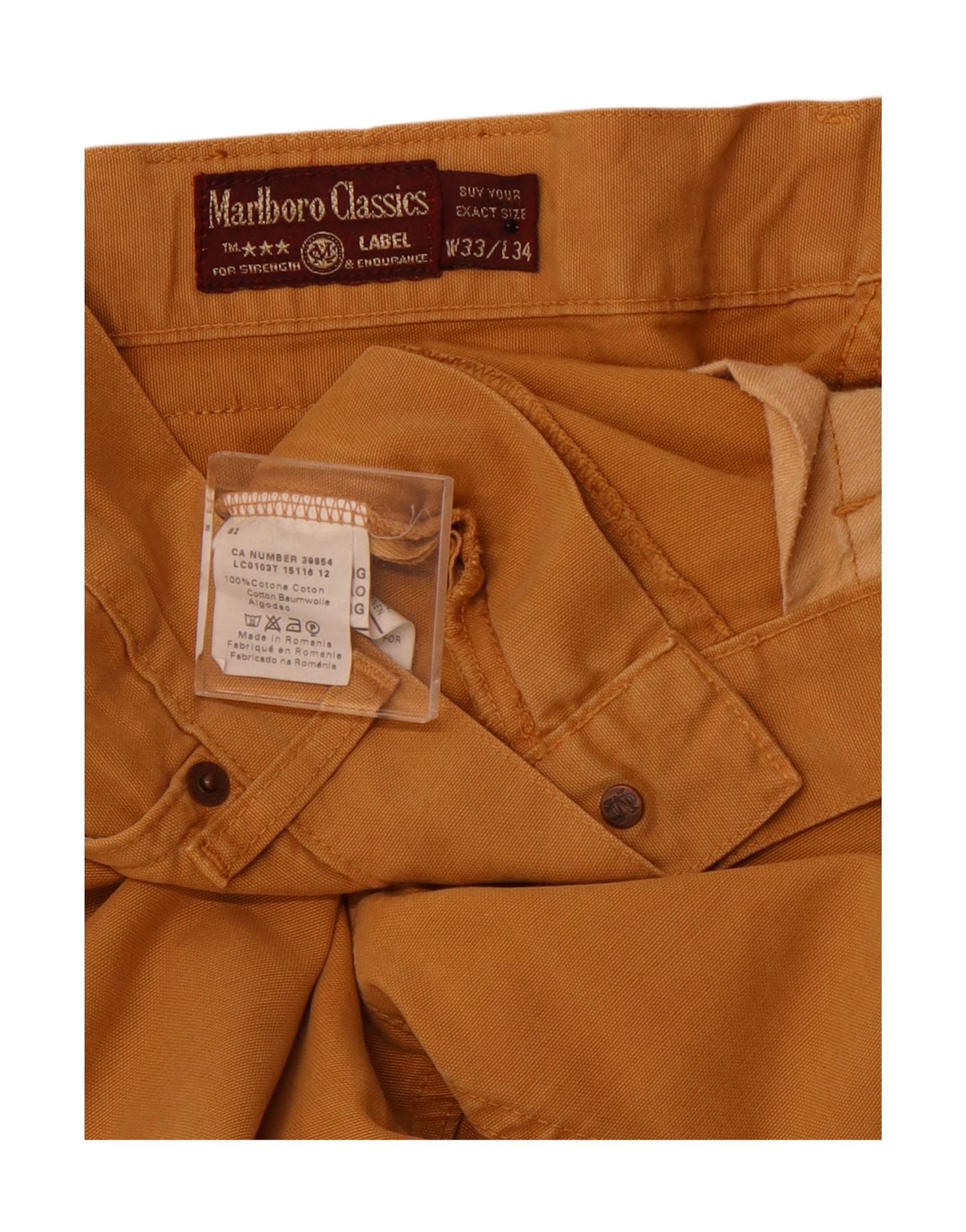 MARLBORO CLASSICS Mens Straight Casual Trousers W33 L34 Beige Cotton