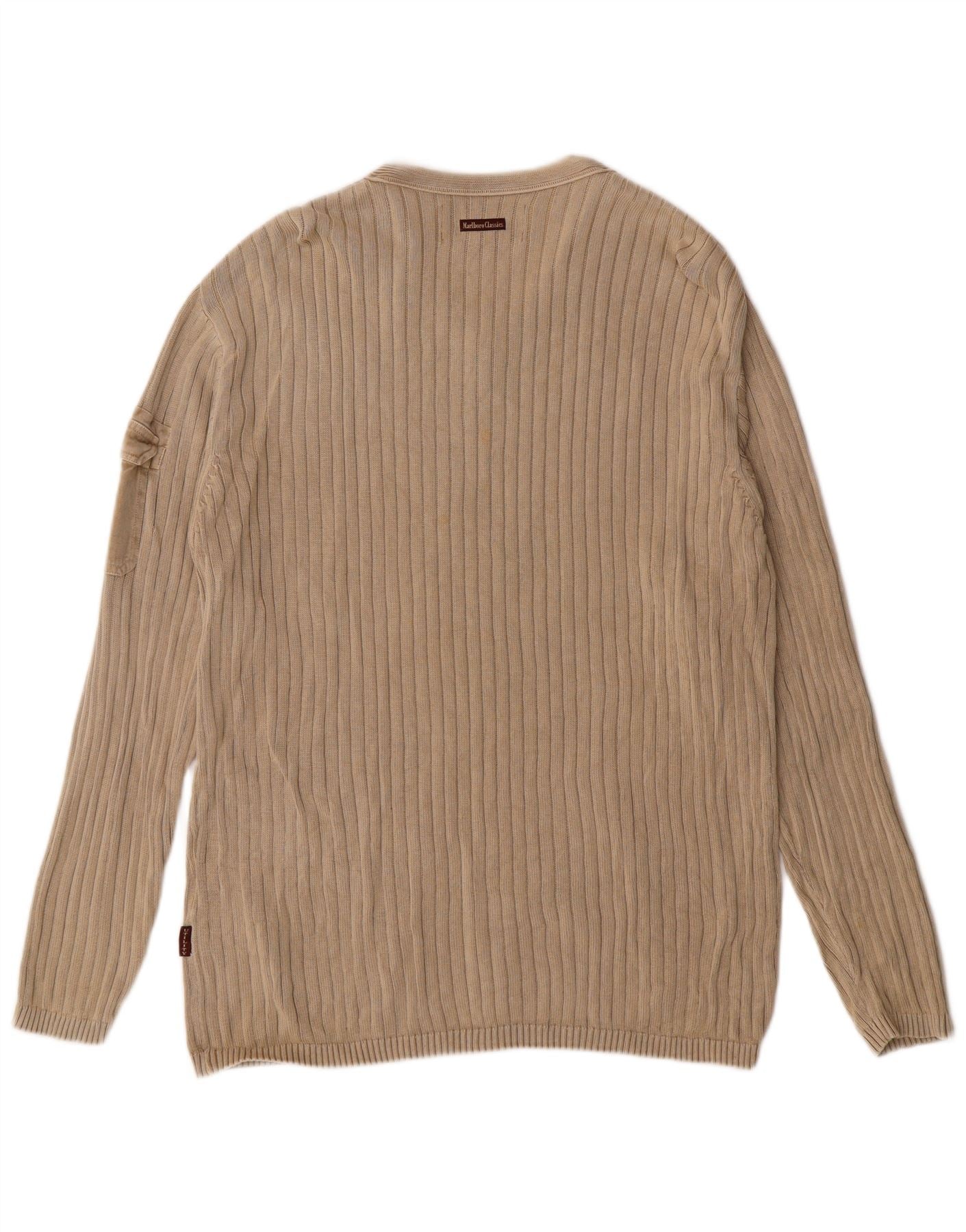 Marlboro Classics Pulover cu decolteu în V pentru bărbați, mare, bej, bumbac, clasic