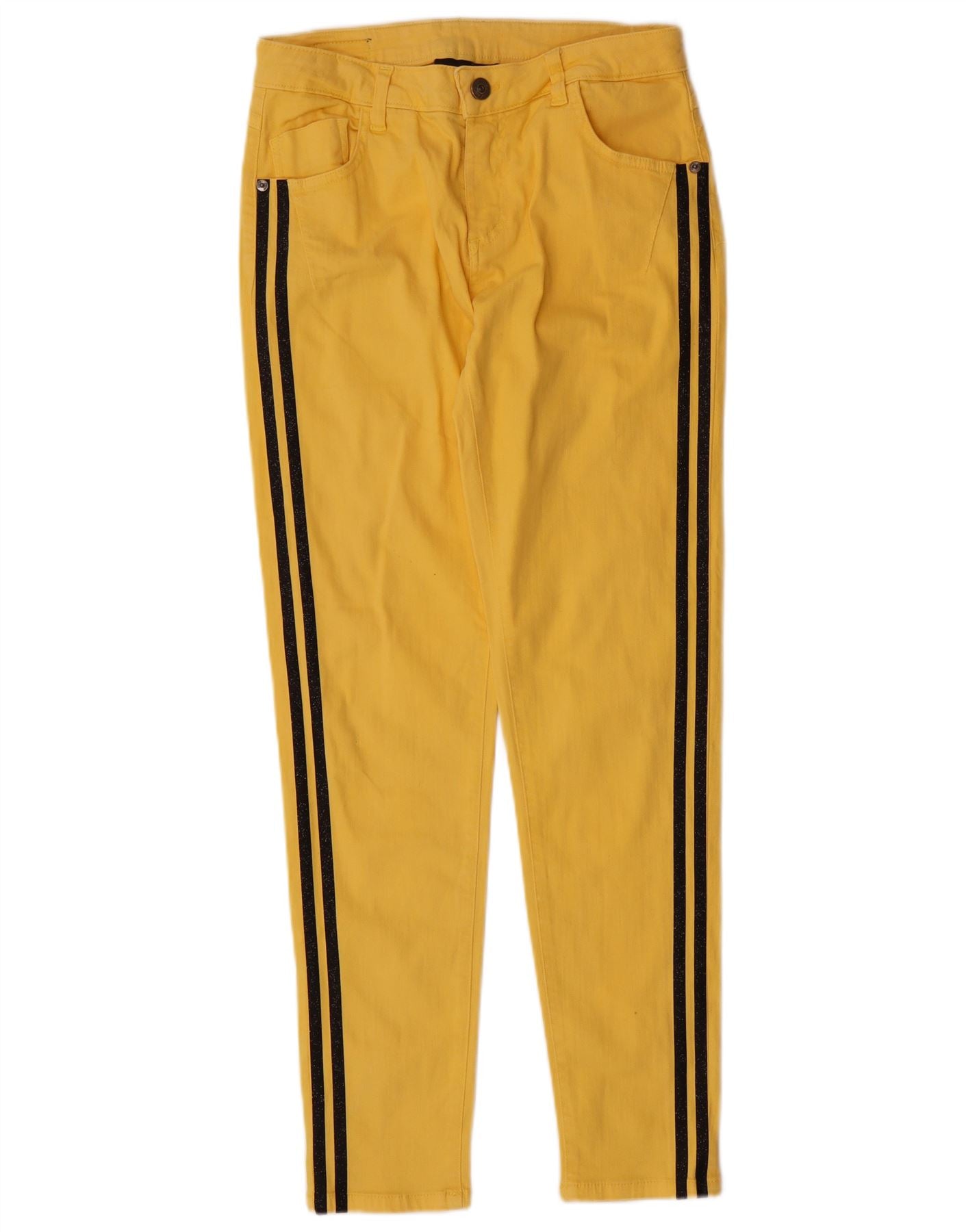 MARYLEY Pantaloni casual subțiri pentru femei UK 12 Medium W28 L28 Galben cu dungi