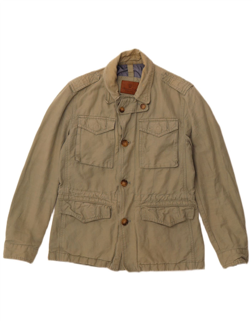 MASSIMO DUTTI Mens Military Jacket UK 36 Small Khaki Cotton
