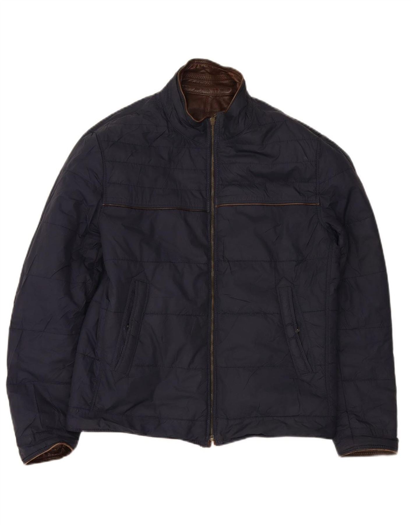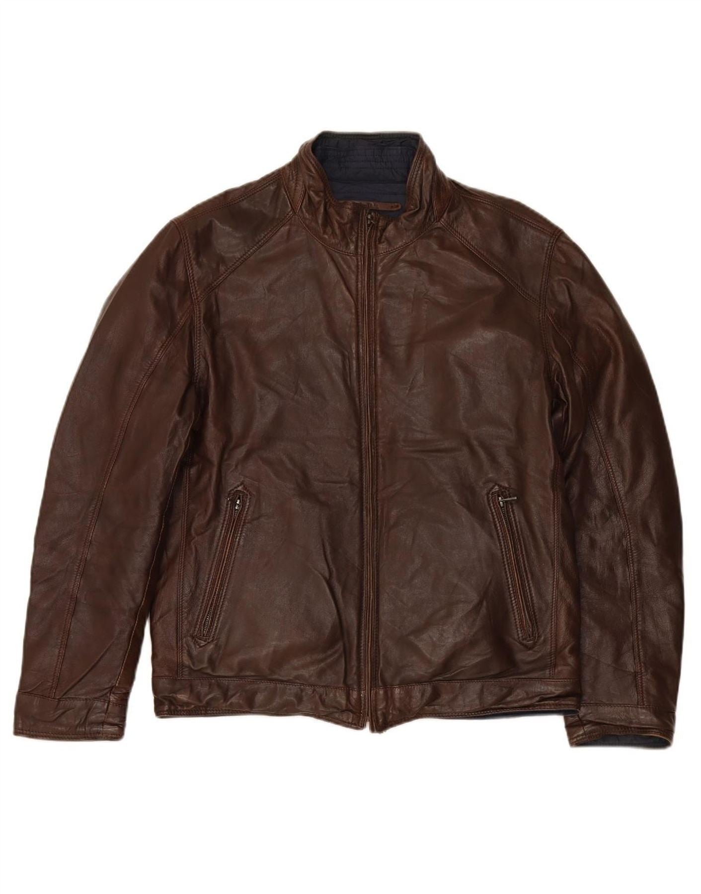 MASSIMO DUTTI Mens Reversible Leather Jacket UK 36 Small Brown