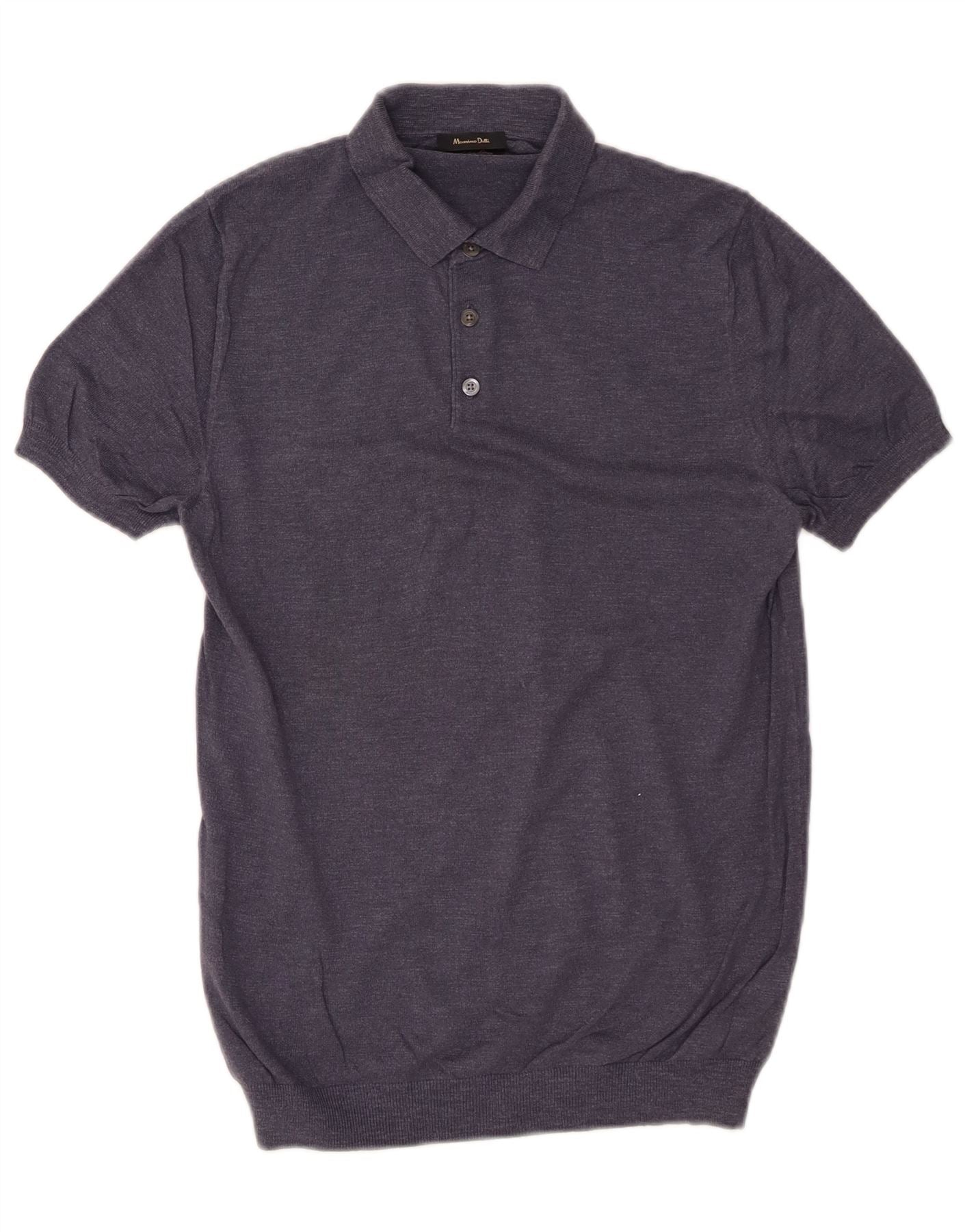 MASSIMO DUTTI Pulover pentru bărbați cu mânecă scurtă, cu gât polo, mic, bleumarin