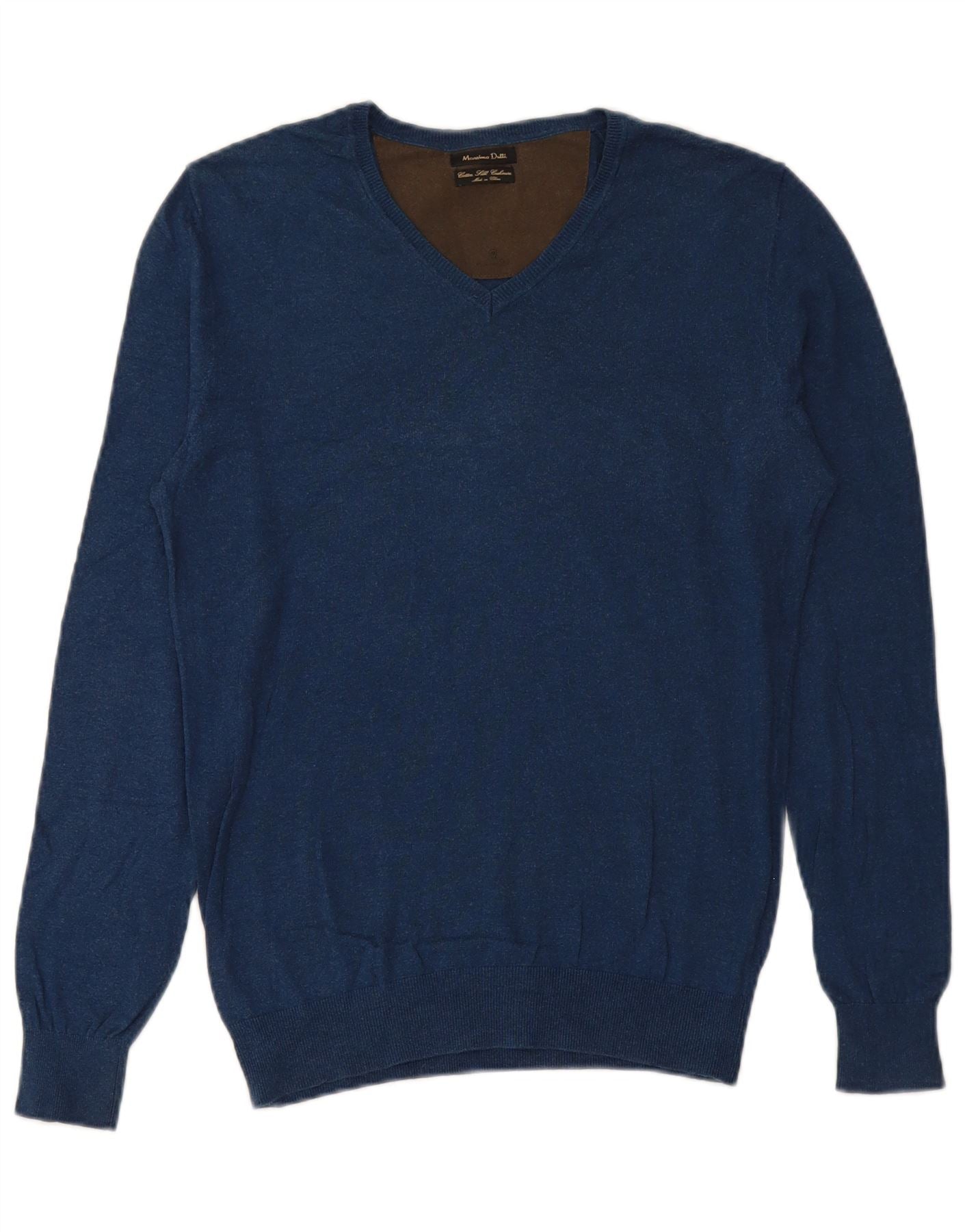MASSIMO DUTTI Mens V-Neck Jumper Sweater Small Blue Cotton