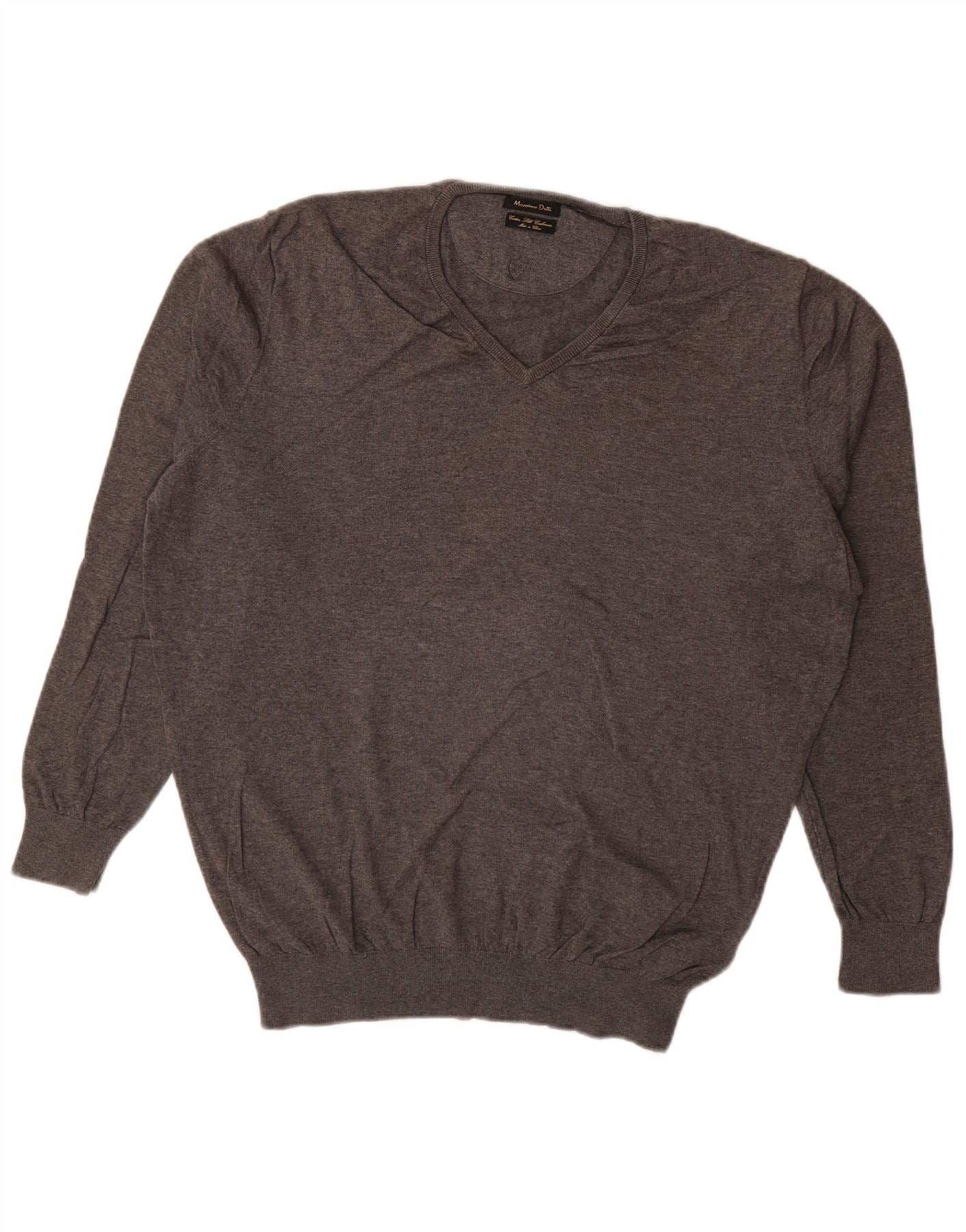 MASSIMO DUTTI Pulover cu decolteu în V pentru bărbați XL bumbac gri