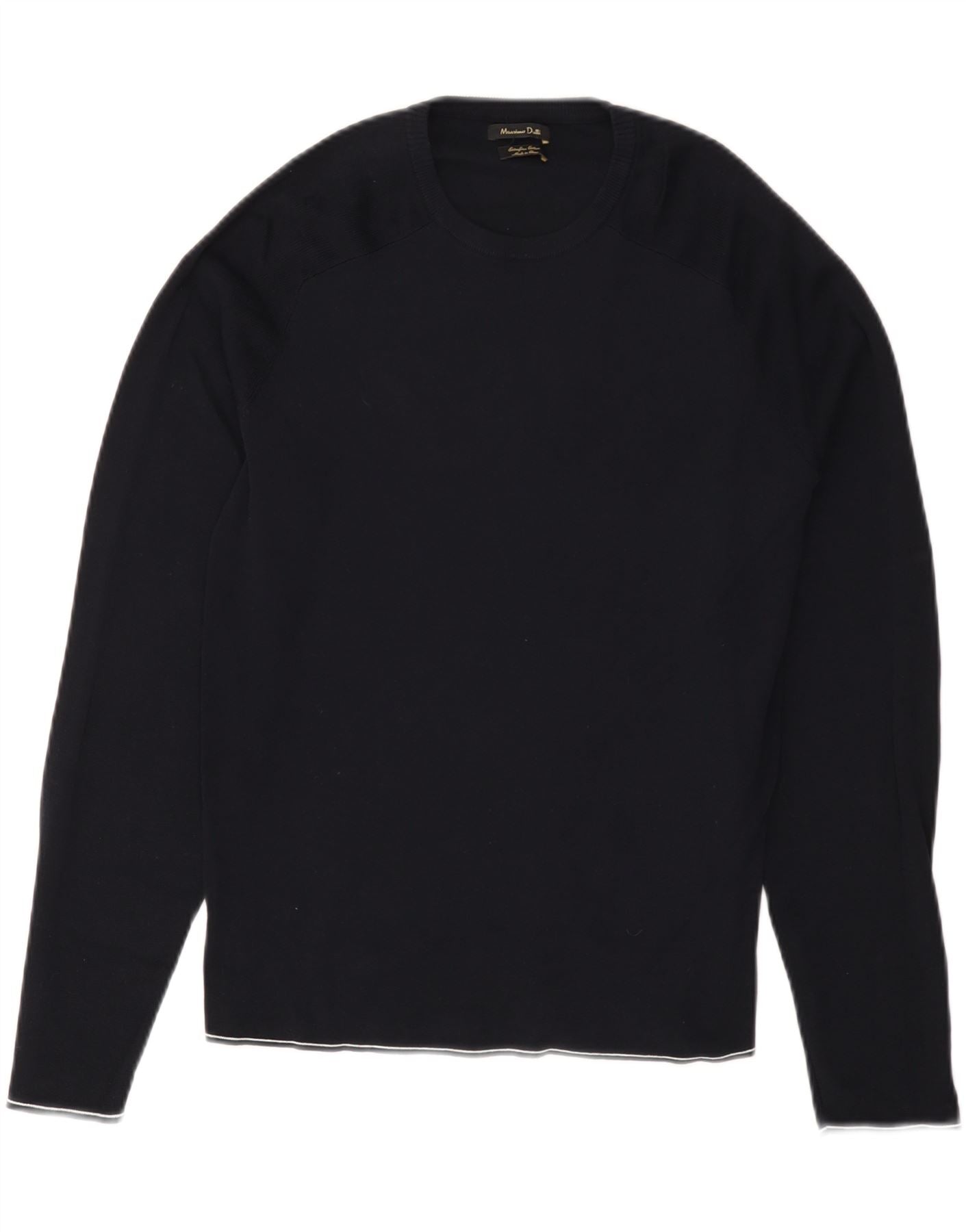 MASSIMO DUTTI Womens Crew Neck Jumper Sweater UK 12 Medium Navy Blue