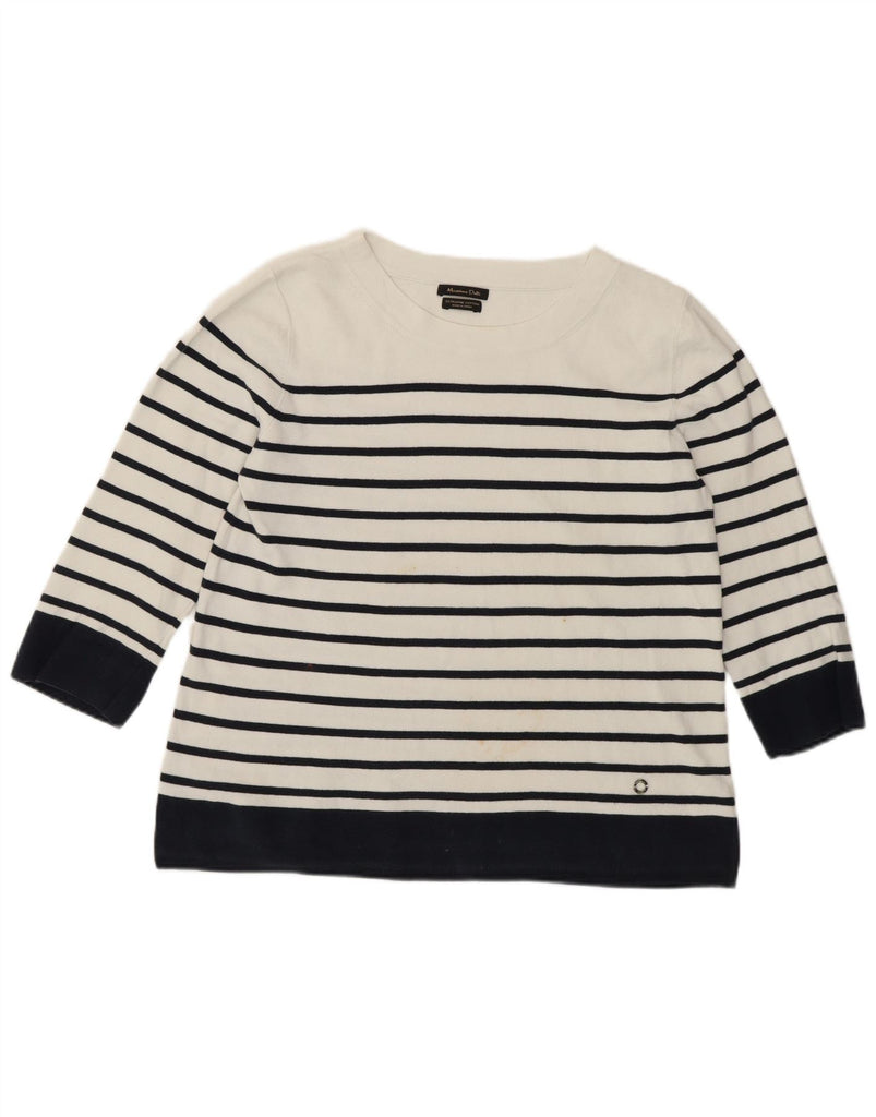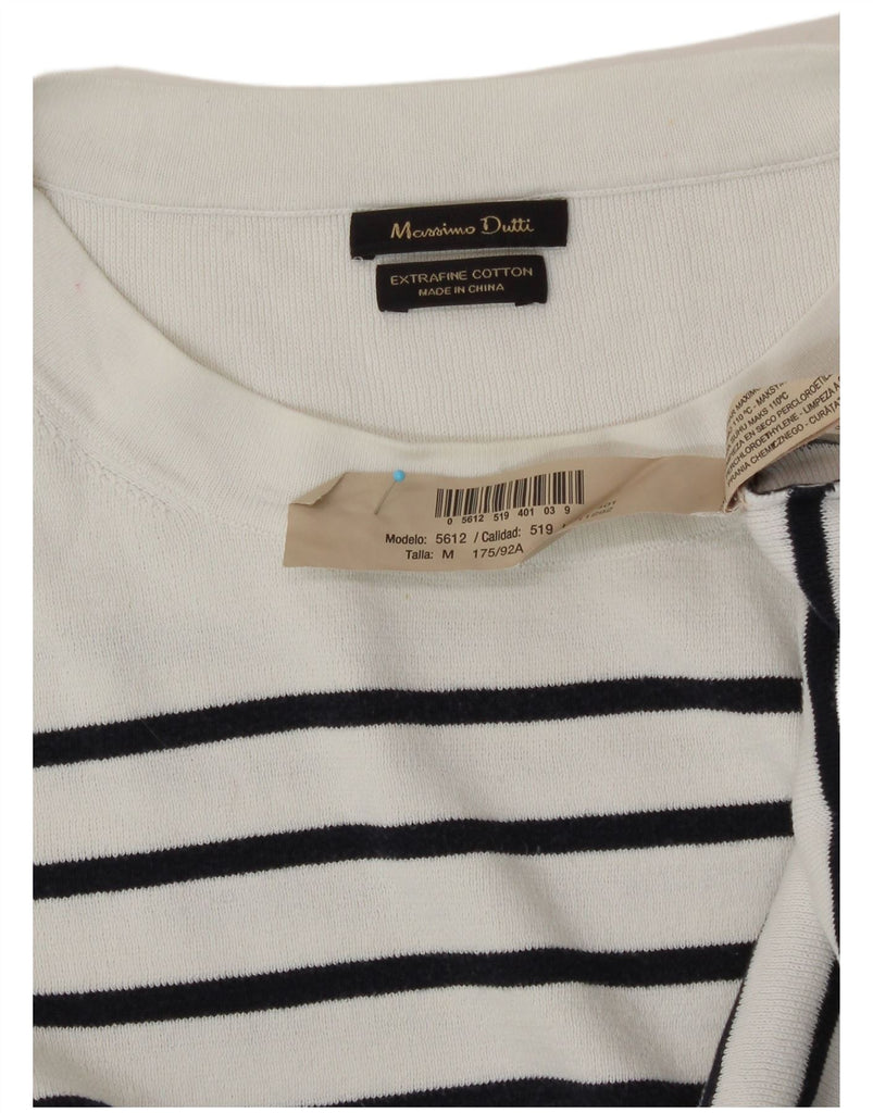 MASSIMO DUTTI Womens Crop Crew Neck Jumper Sweater UK 14 Medium White