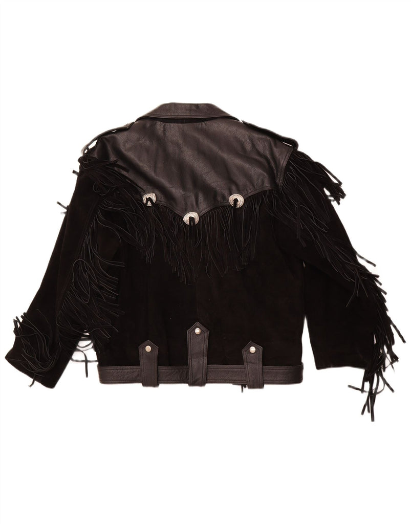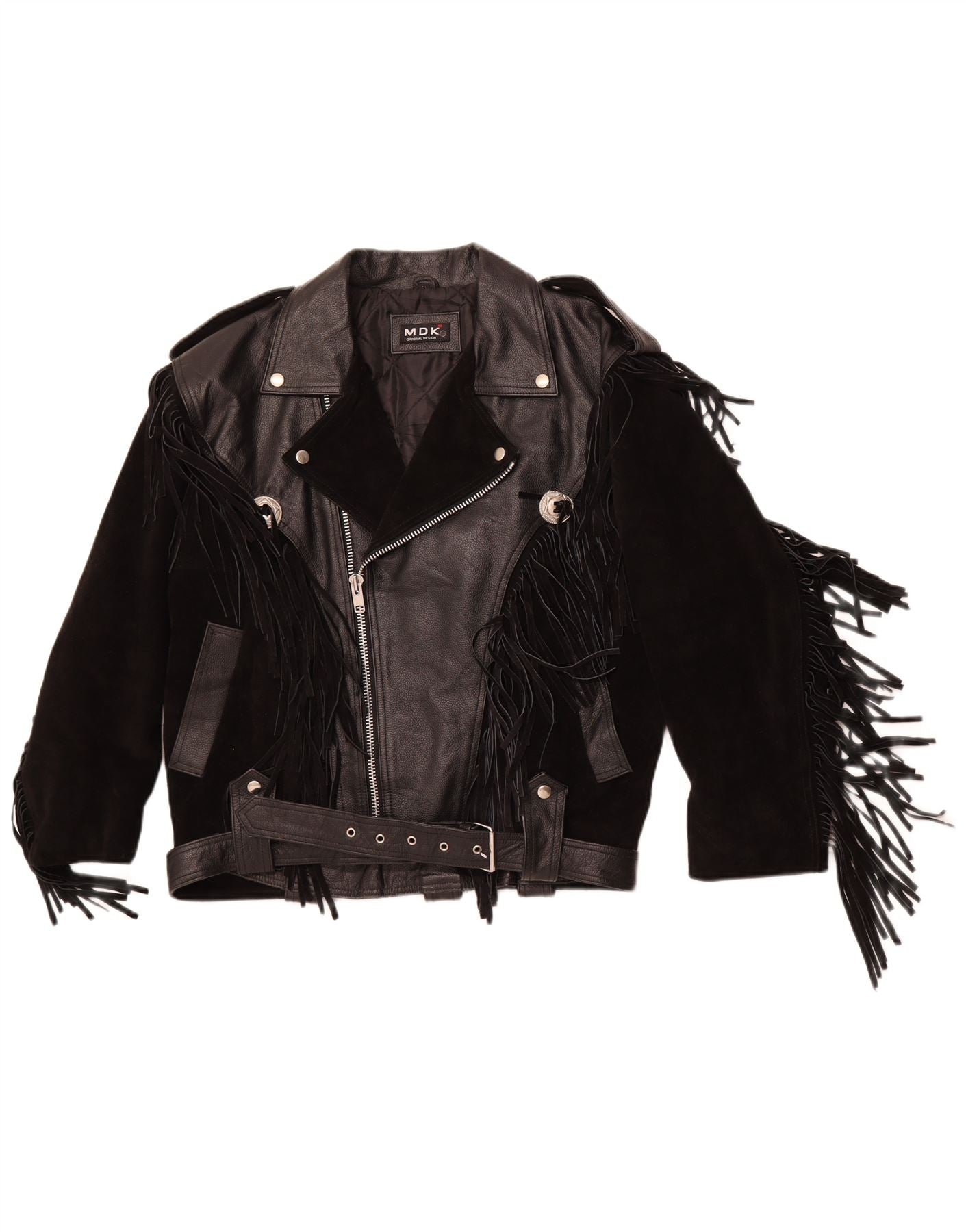 Jachetă de motociclist din piele MDK pentru femei, Western cu tăiere largi, UK 14 Medium Black
