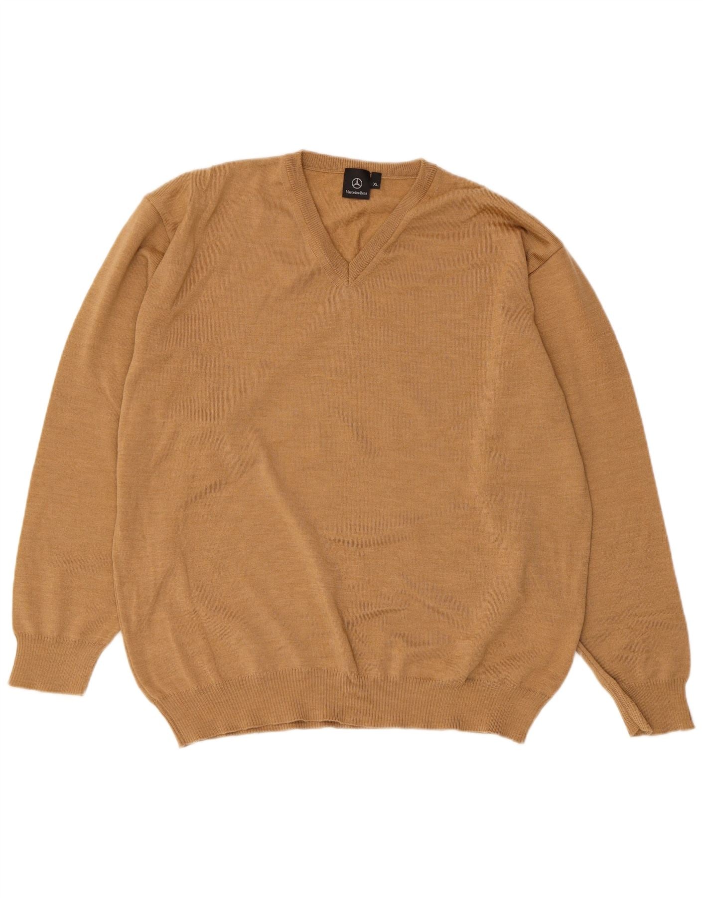 MERCEDES-BENZ Mens V-Neck Jumper Sweater XL Beige New Wool