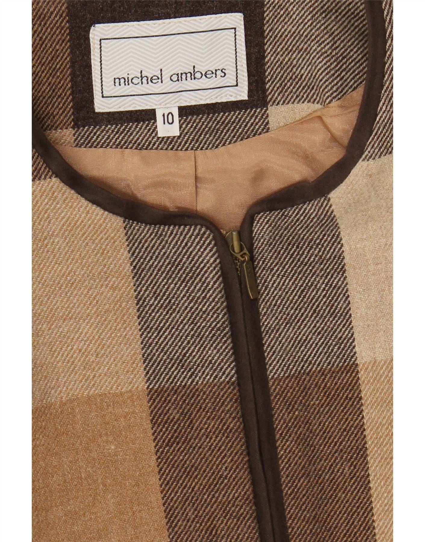 MICHEL AMBERS Womens Blazer Jacket UK 10 Small Brown Check Polyester