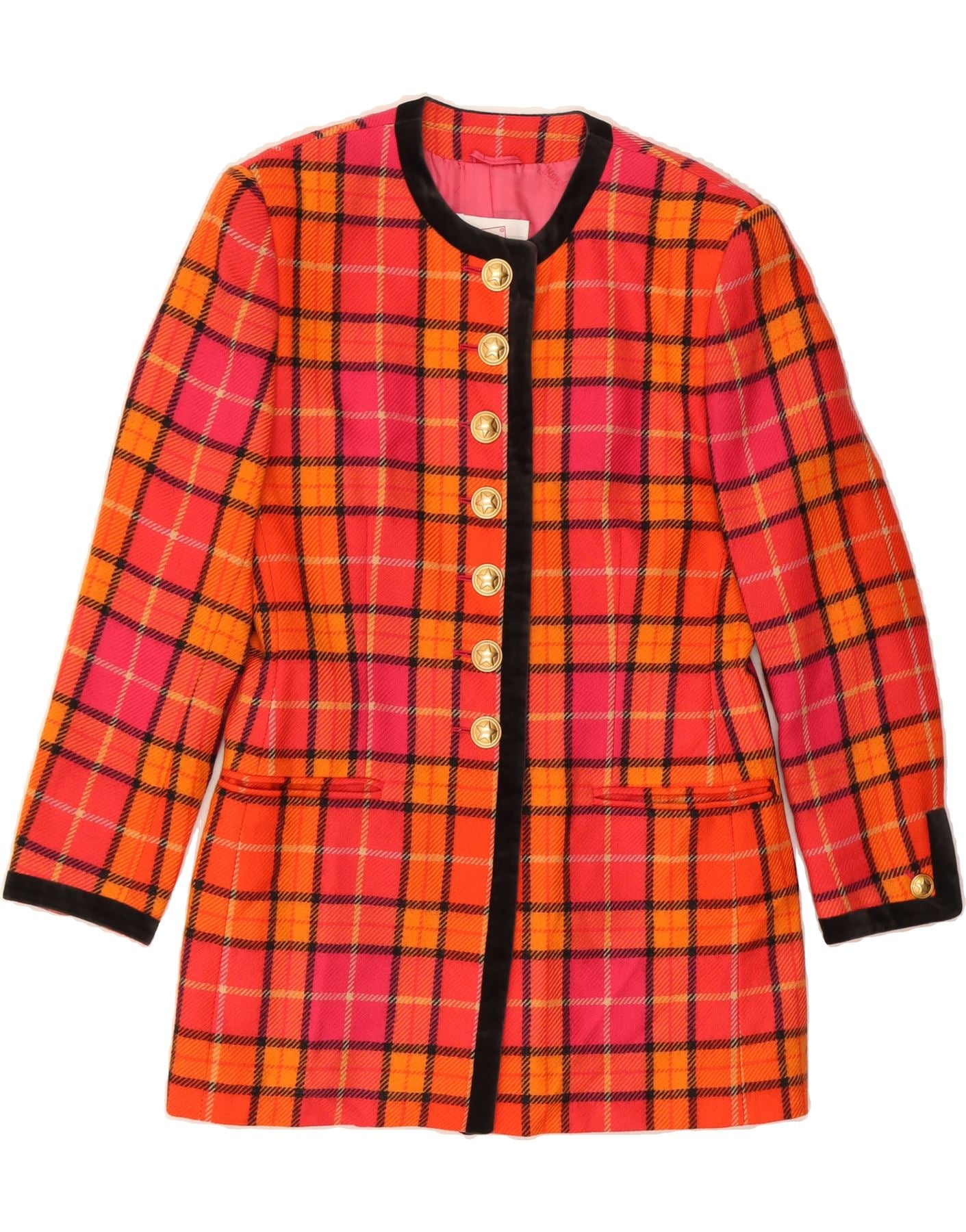 MONDI Womens 7 button Blazer Jacket EU 36 Small Orange Check Classic