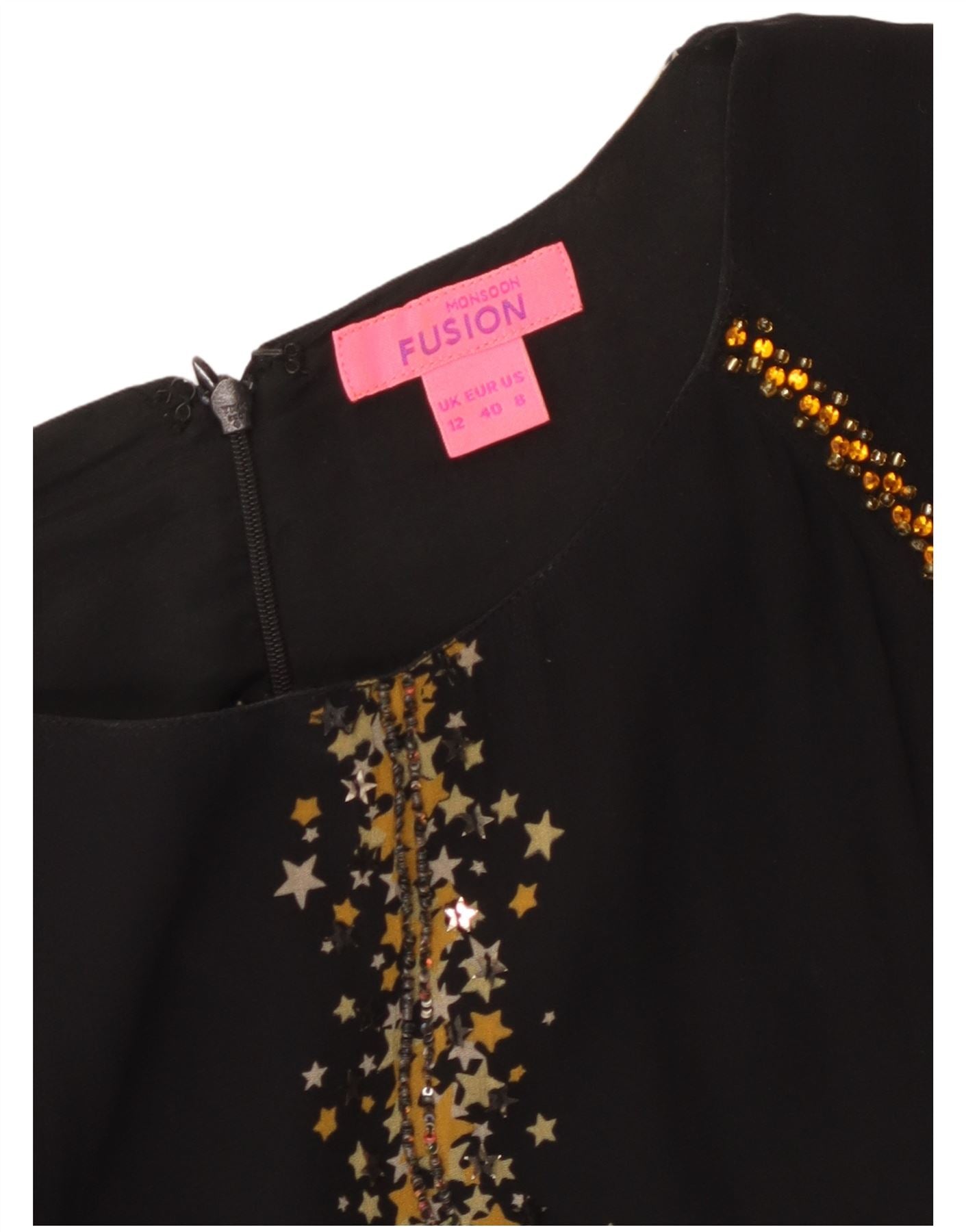 MONSOON Rochie A-Line cu mâneci 3/4 pentru femei, cu model abstract, UK 12 Medium Negru