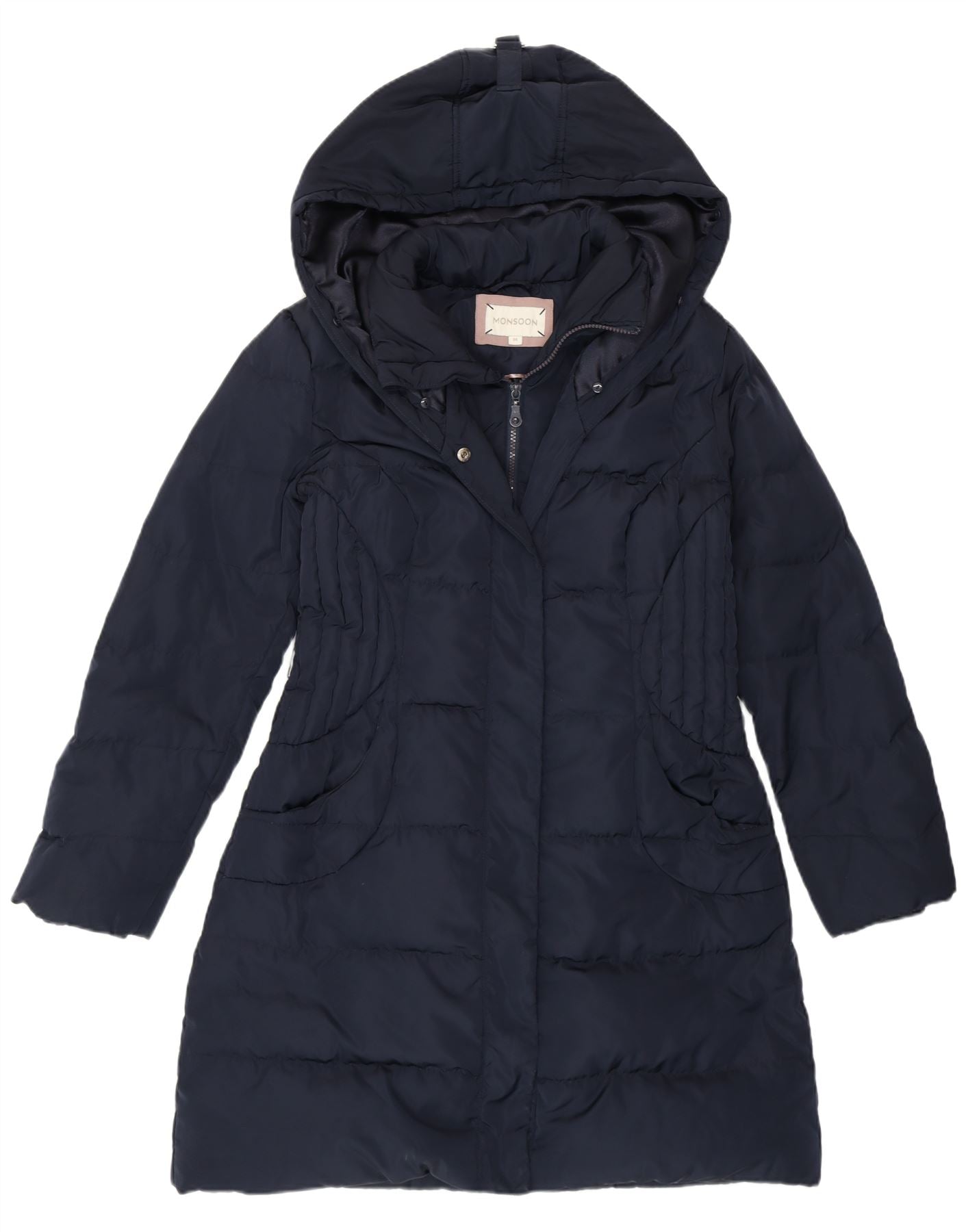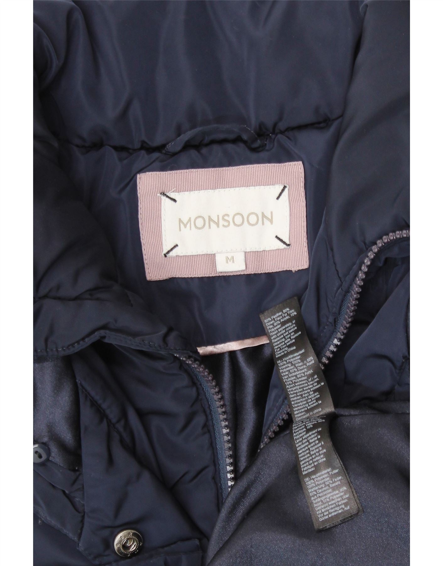 MONSOON Palton căptușit cu glugă pentru femei UK 14 Poliester mediu albastru bleumarin