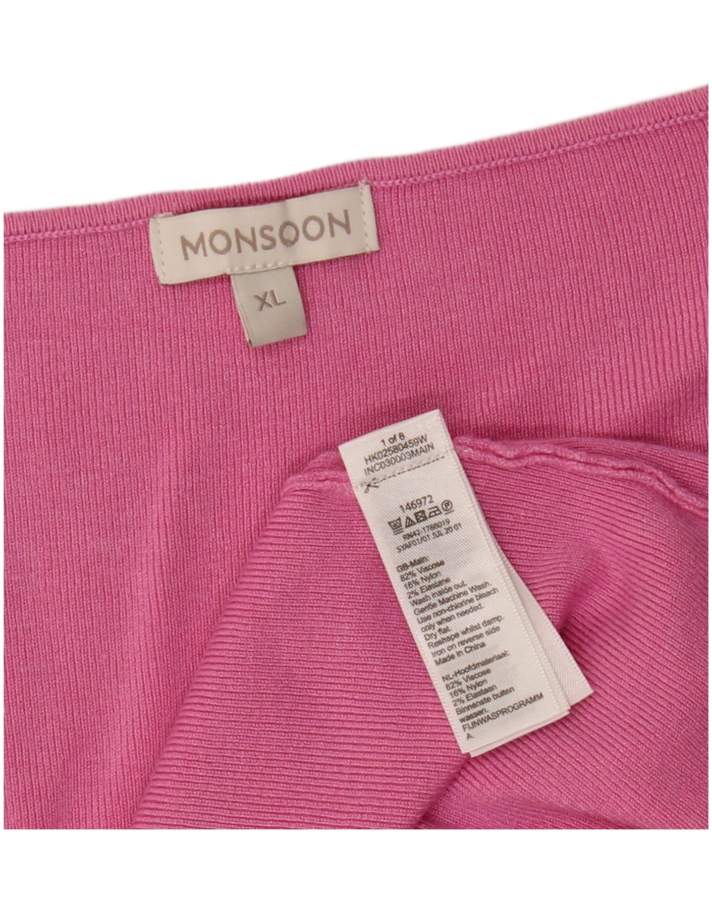 MONSOON Pulover cu decolteu în V pentru femei UK 18 XL Viscoză roz