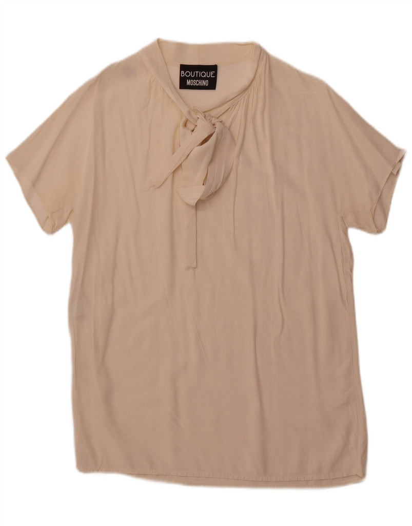 MOSCHINO Womens Front Tie Blouse Top UK 8 Small Off White Rayon