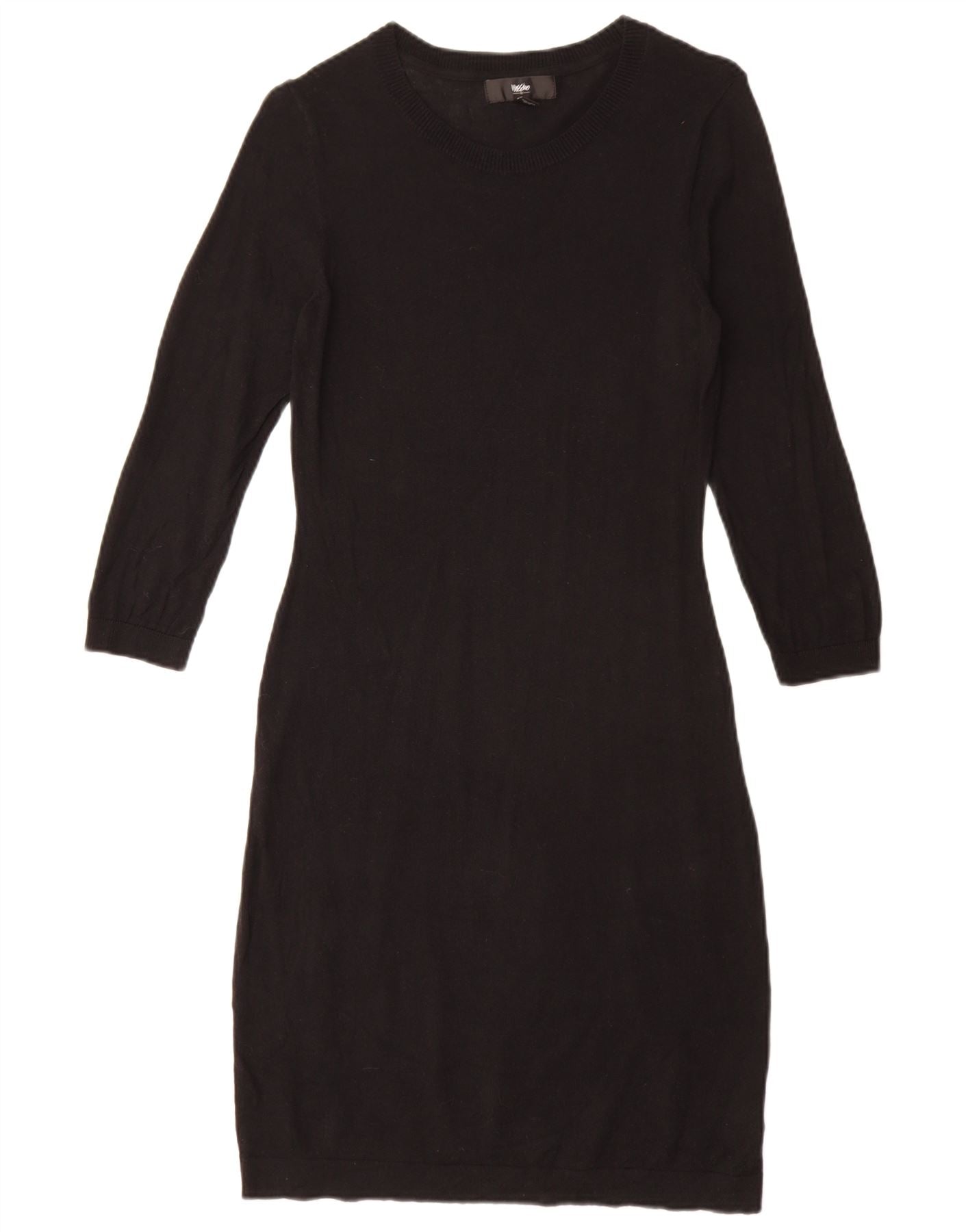 MOSSIMO Rochie Jumper pentru Femei cu mâneci 3/4 UK 10 Bumbac Negru Mic