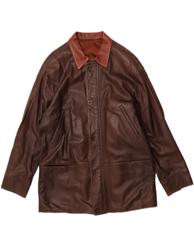 MUNPER Jachetă din piele pentru bărbați IT 50, maro mare, piele de oaie