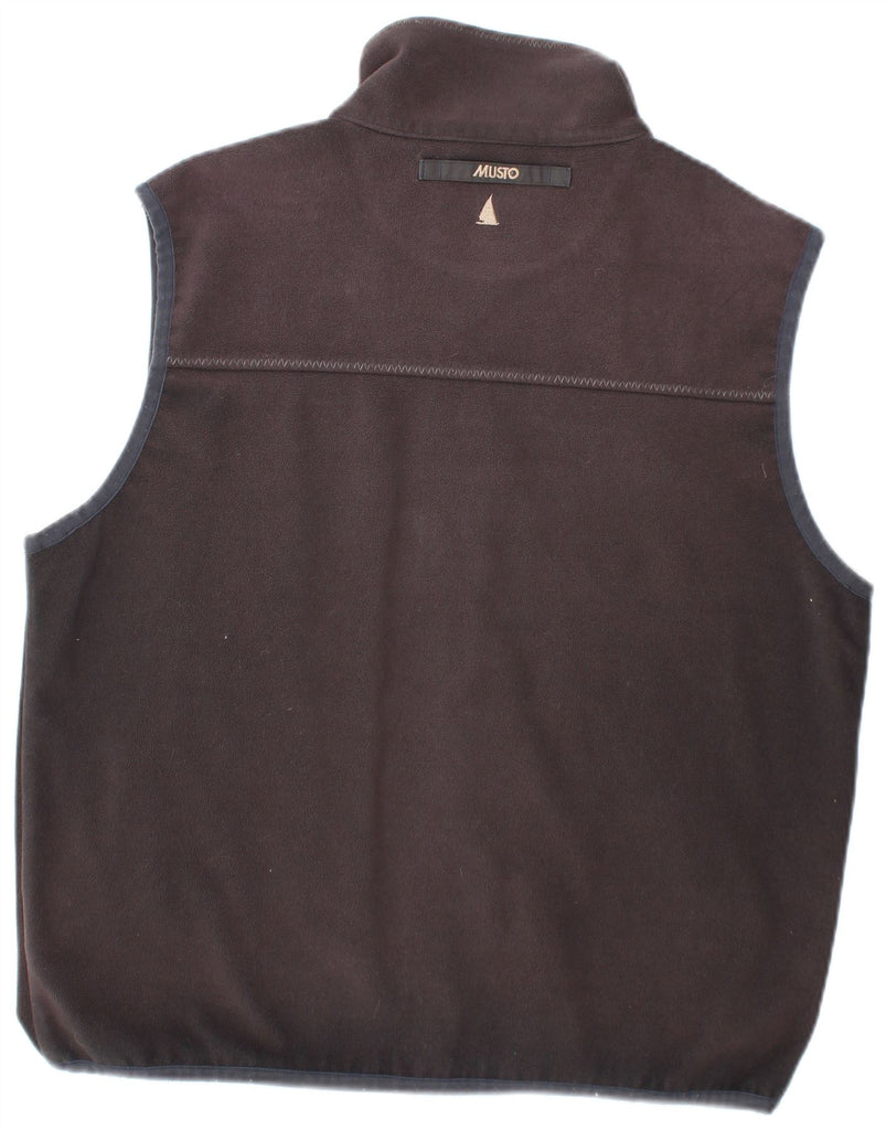 - AI Description: This Musto mens waistcoat is crafted from a black polyester fleece, offering warmth and a soft texture. It features a practical collared neckline and a full zip closure for easy wear. The sleeveless design ensures freedom of movement. Two functional pockets add utility. Its regular fit provides comfortable layering, making it ideal for outdoor pursuits or casual wear.