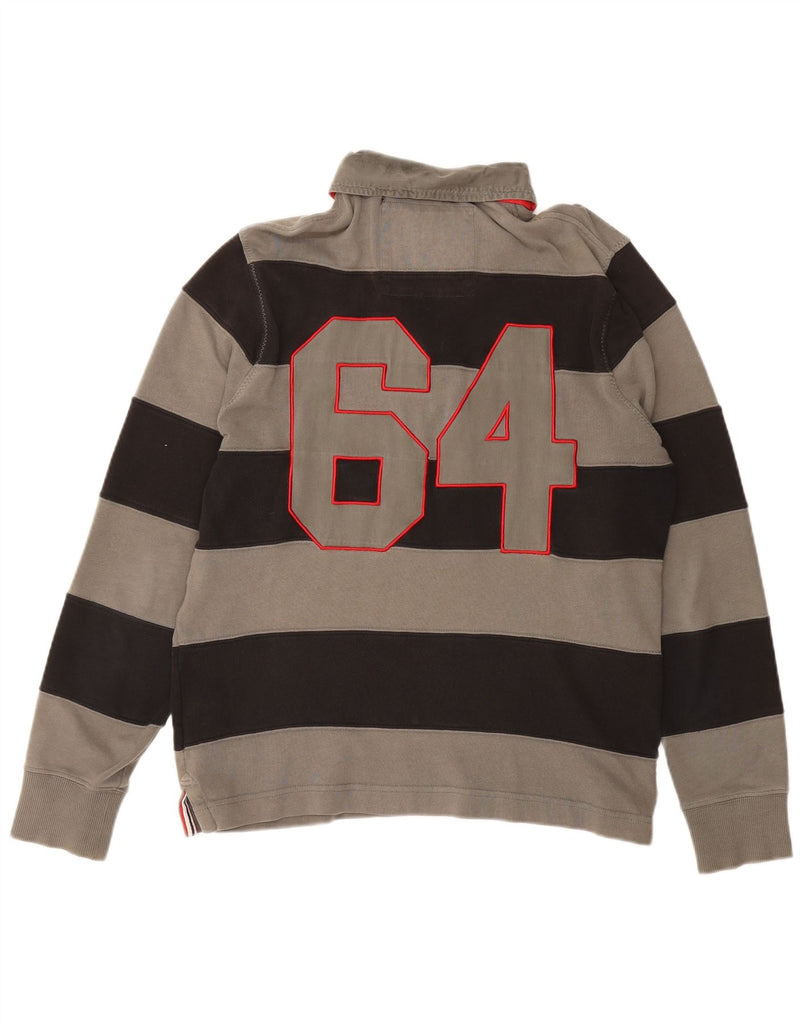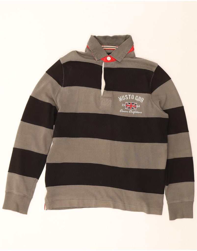 MUSTO Mens Graphic Long Sleeve Polo Shirt Medium Grey Striped Cotton