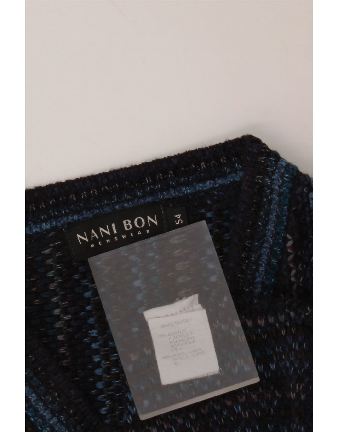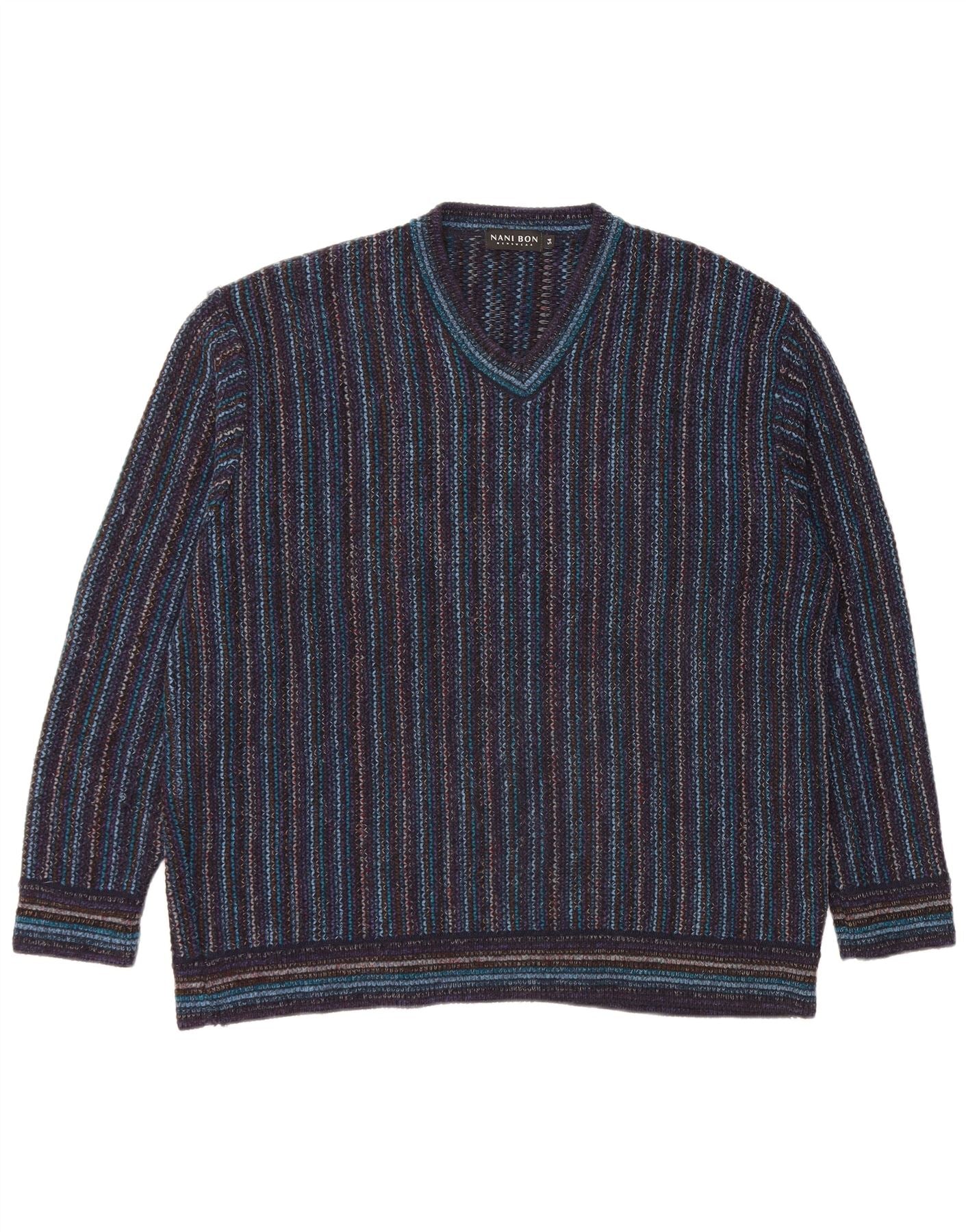 NANI BON Pulover cu decolteu în V pentru bărbați IT 54 XL bleumarin cu dungi acrilice