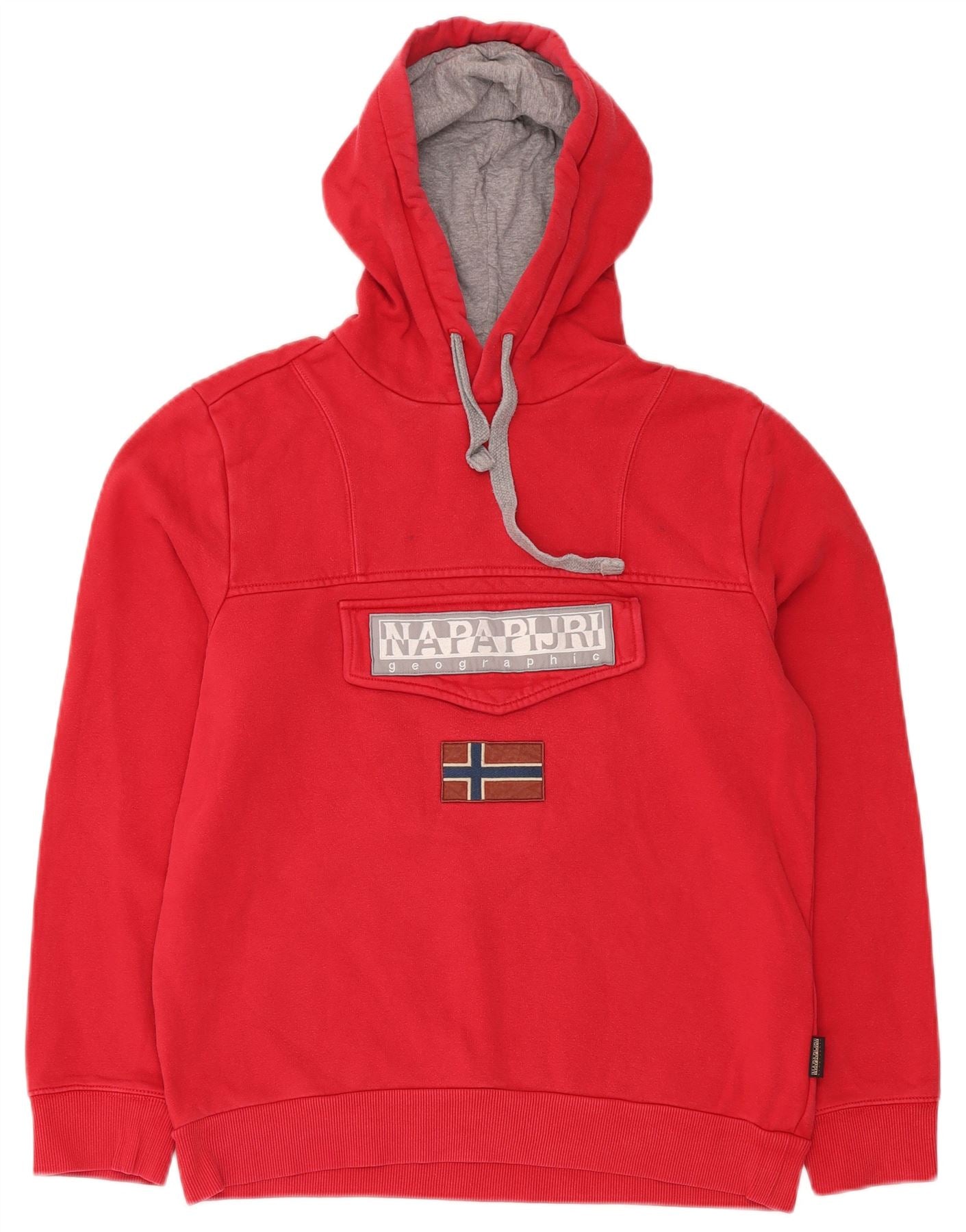 NAPAPIJRI Pulover cu glugă grafic pentru bărbați, bumbac roșu mediu