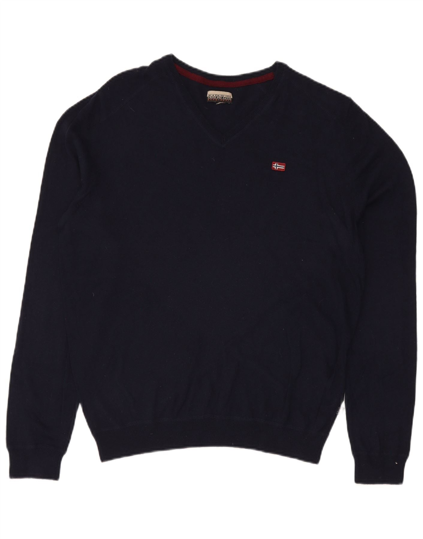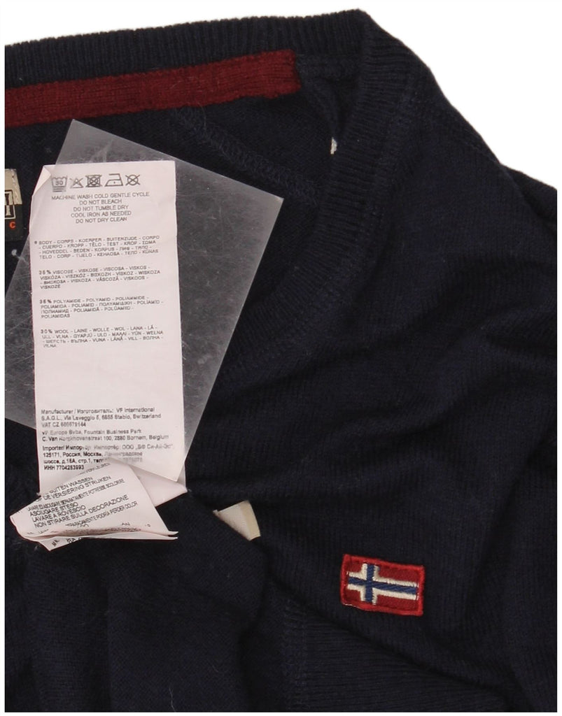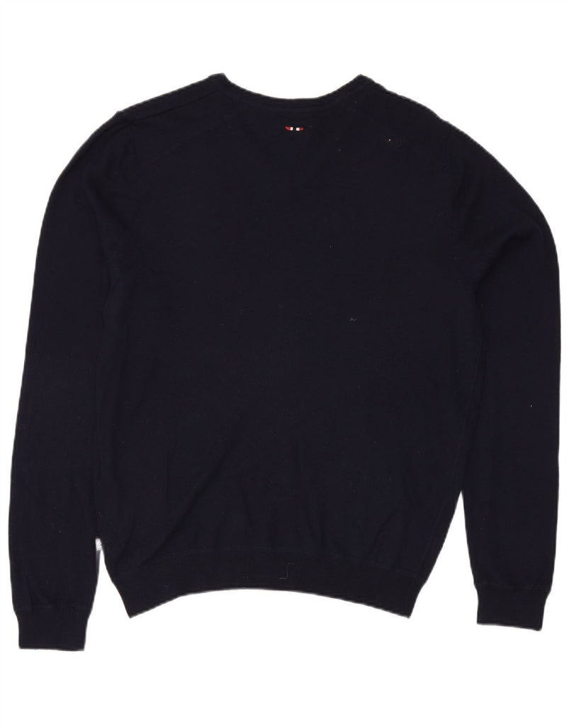 NAPAPIJRI Mens V-Neck Jumper Sweater Medium Navy Blue Viscose