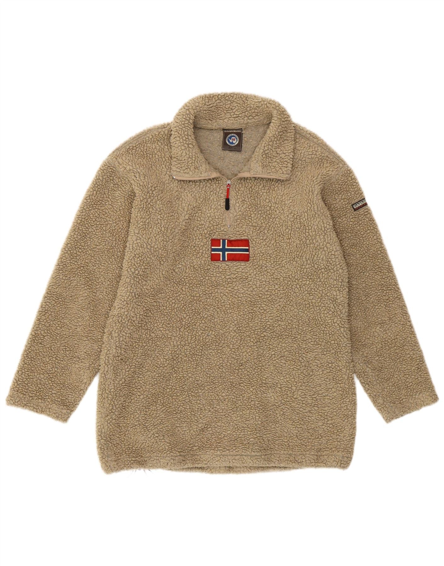 Pulover Napapijri pentru damă, cu grafic, cu fermoar și gât, din lână, mare, bej, poliacrilic