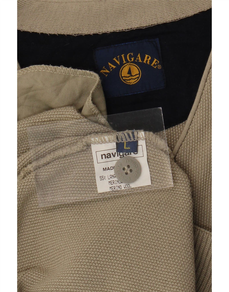 NAVIGARE Mens Sleeveless Cardigan Sweater Large Grey Merino Wool